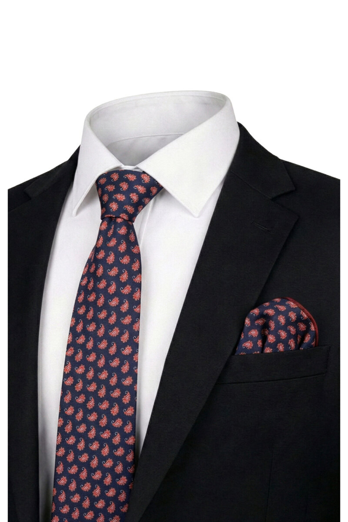 ميزات مجموعة ربطة عنق حريرية منقوشة باللون الأزرق الداكن من Bursa İpek