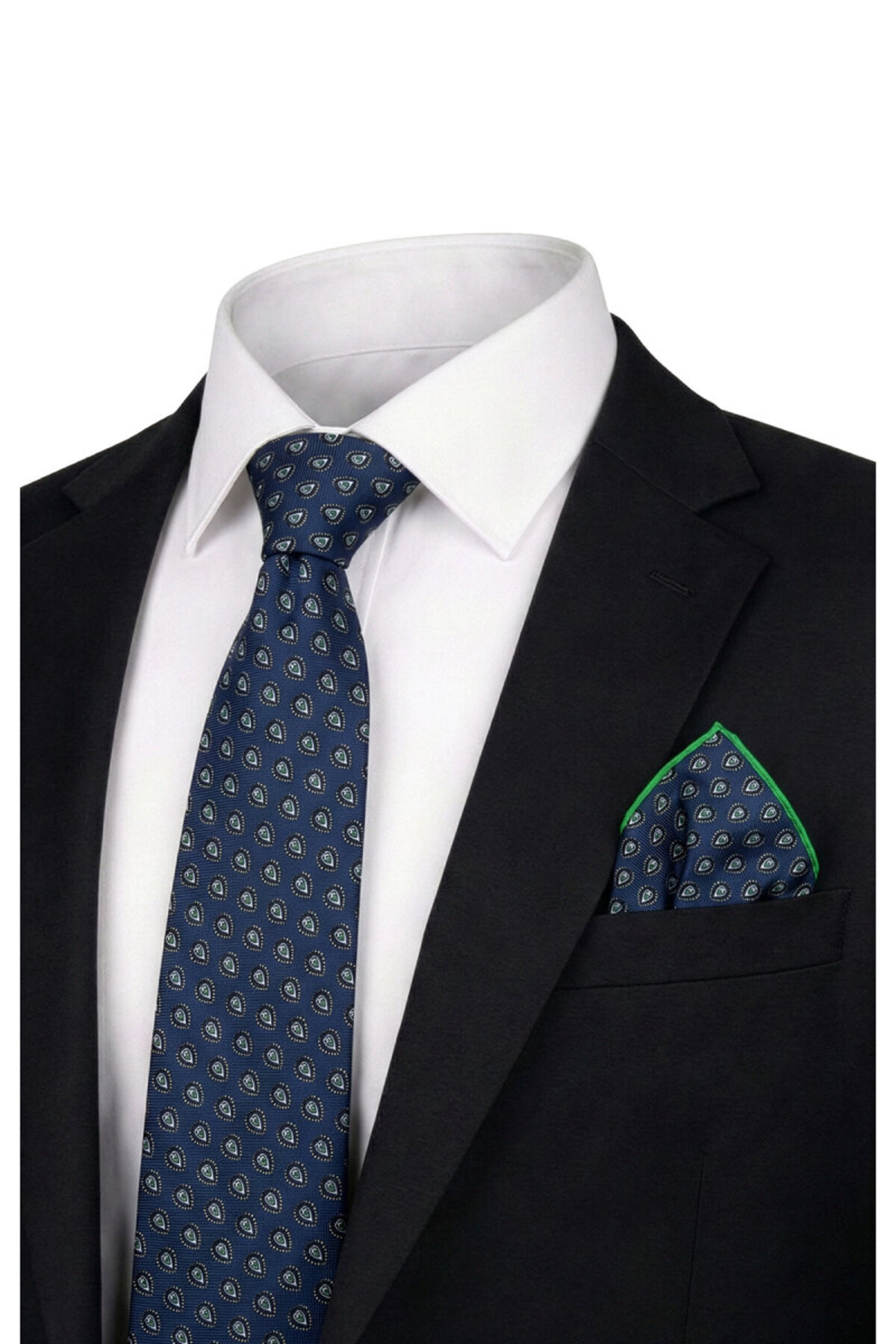 ميزات مجموعة ربطة عنق حريرية منقوشة باللون الأزرق الداكن من Bursa İpek