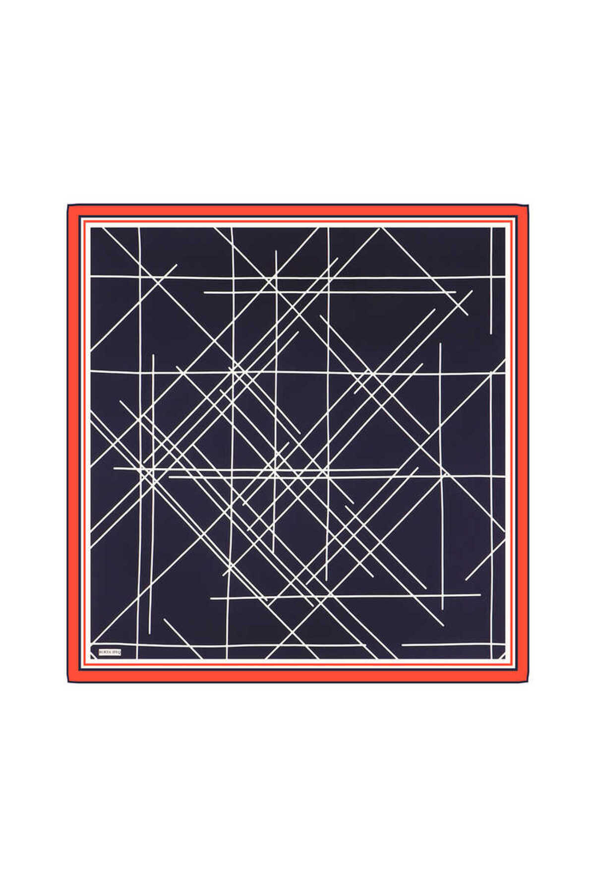 ميزات وشاح حريري شبكي باللون الأزرق الداكن - نمط صدى من Bursa İpek