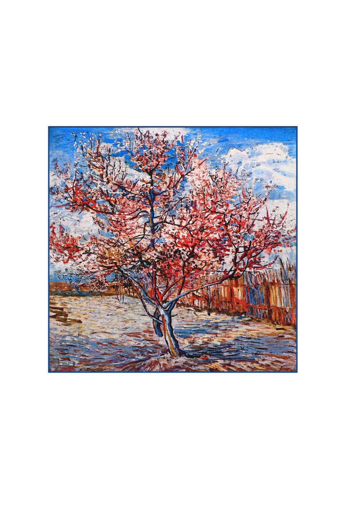 Bursa İpek منديل حريري أزرق منقوش بشجرة الخوخ