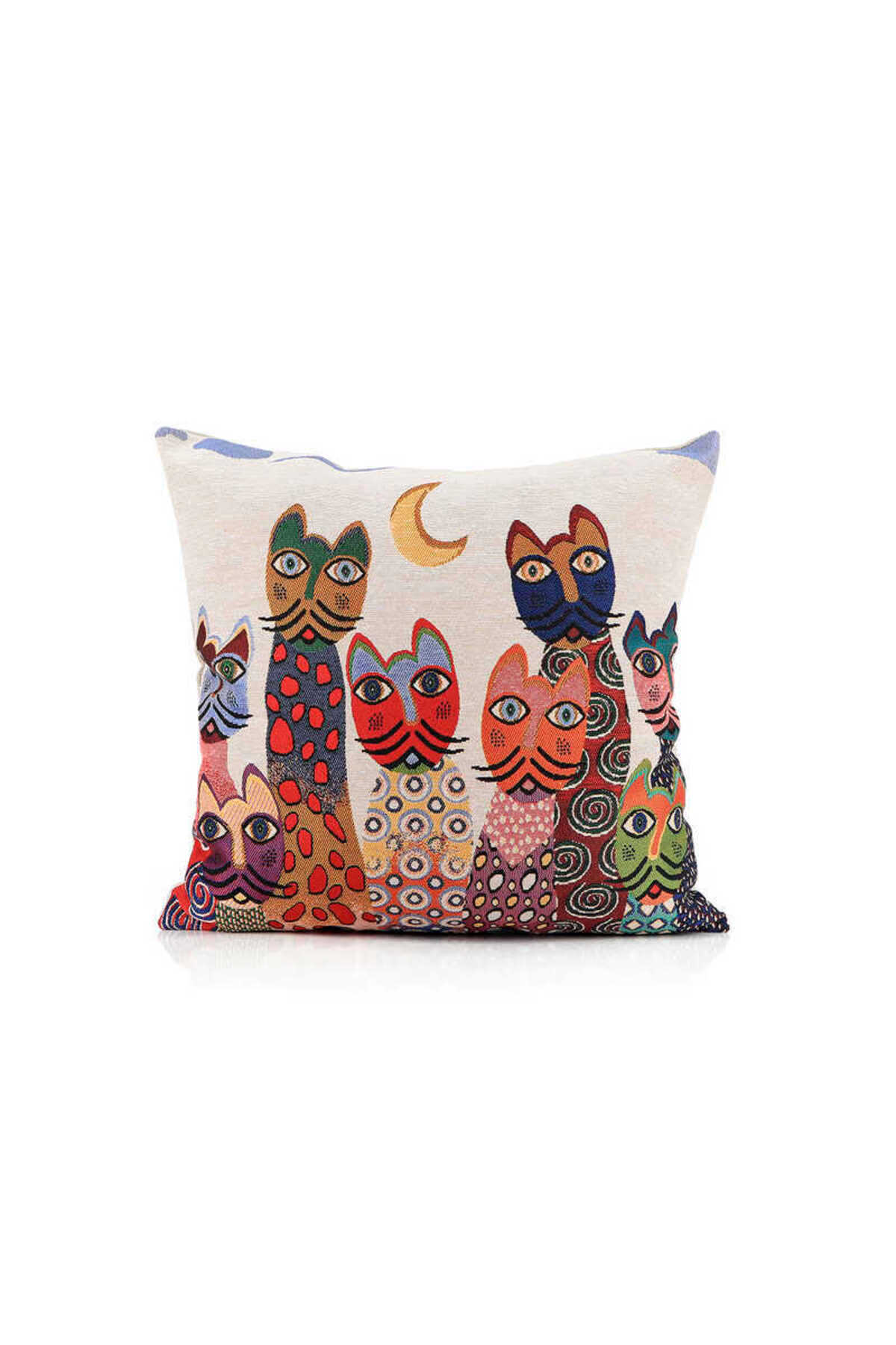 ميزات وسادة رمي مزخرفة بنمط قطة صفراء من Bursa İpek