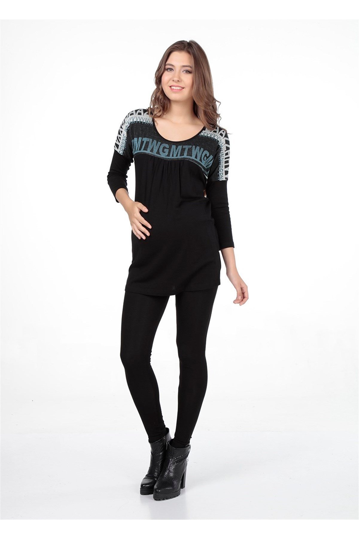 ميزات بلوزة حمل مطبوعة بنمط نصي موديل أسود من BUSA