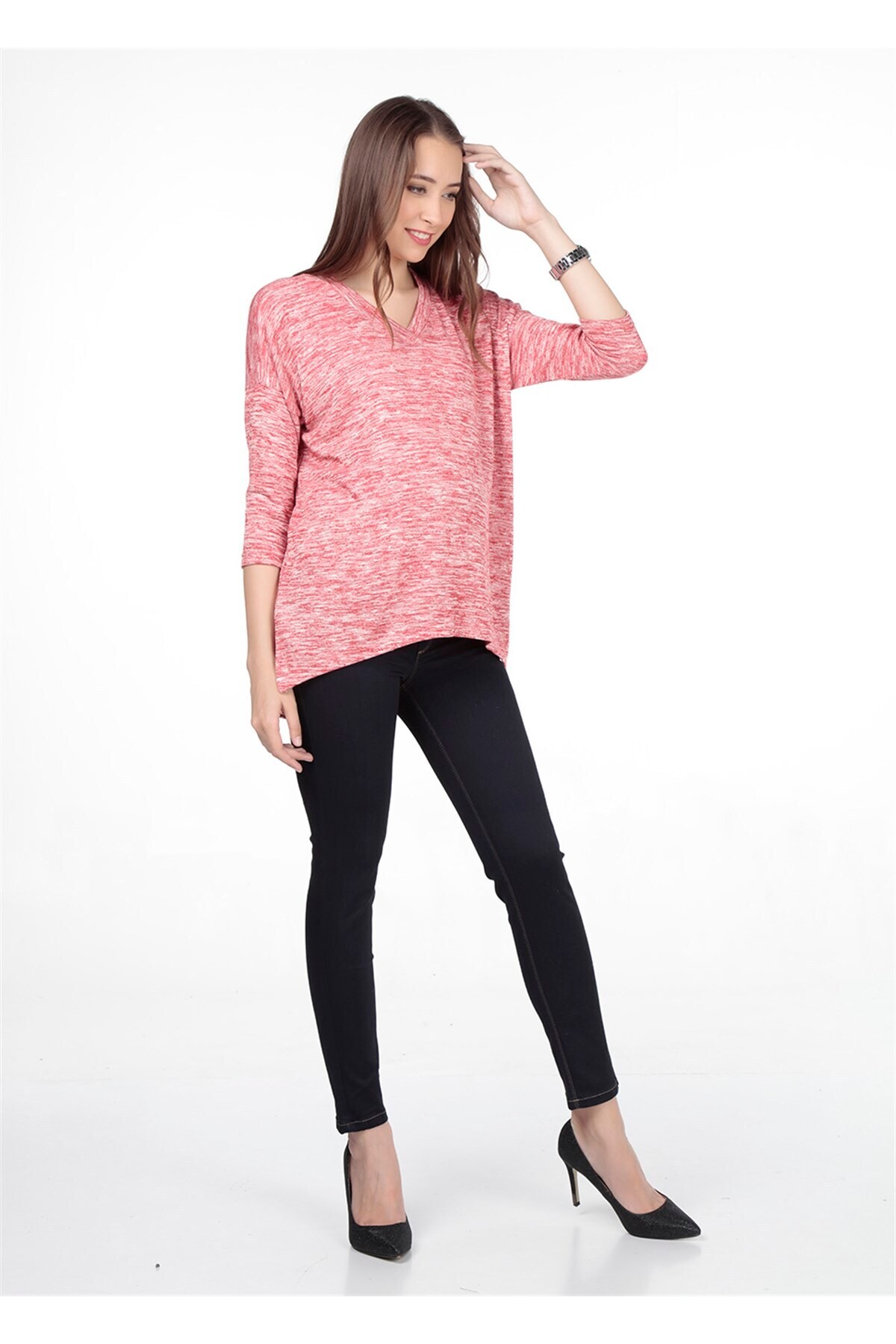 BUSA بلوزة حمل بياقة على شكل حرف V باللون الأحمر