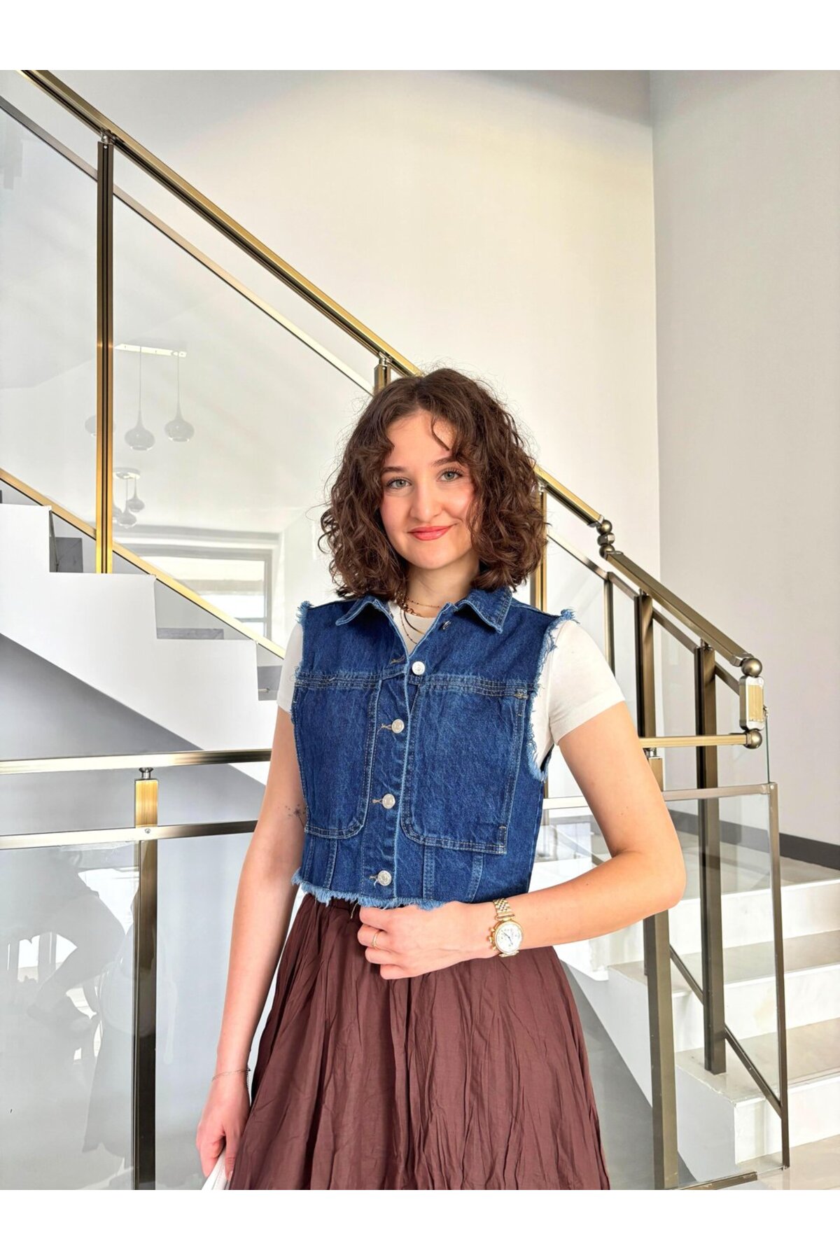 ميزات سترة من الدنيم بأزرار وياقة من Butik
