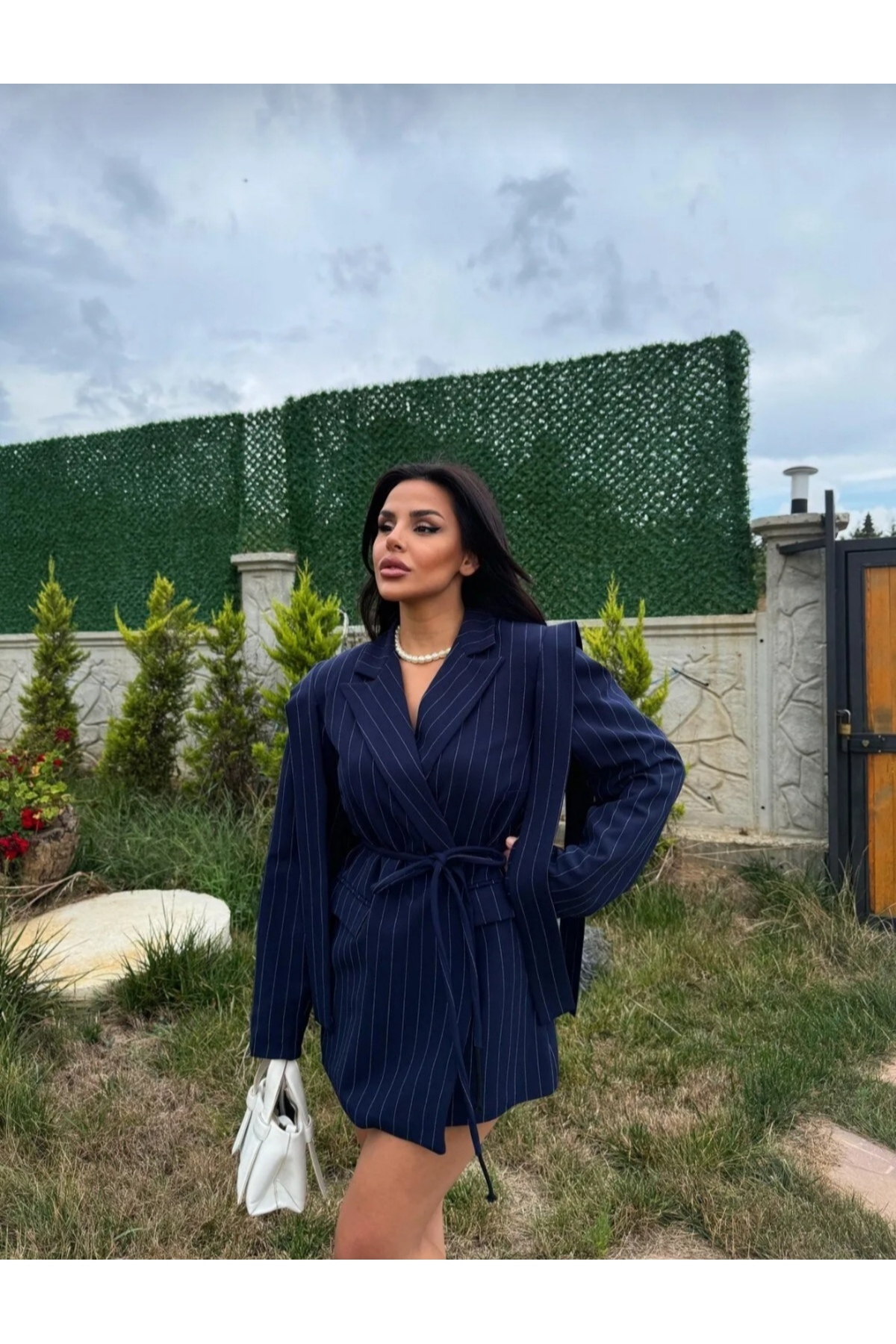 ميزات سترة بليزر كبيرة الحجم مع تصميم ربطة عنق من Butik