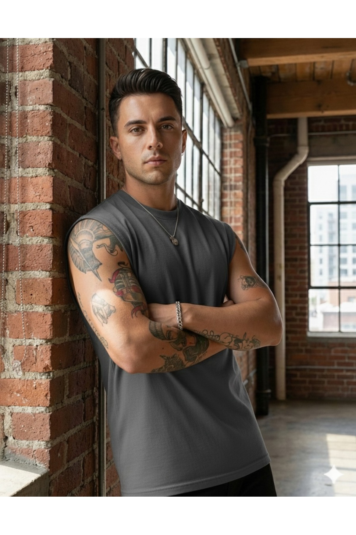 ميزات تيشيرت رجالي أساسي بدون أكمام من BUWOM