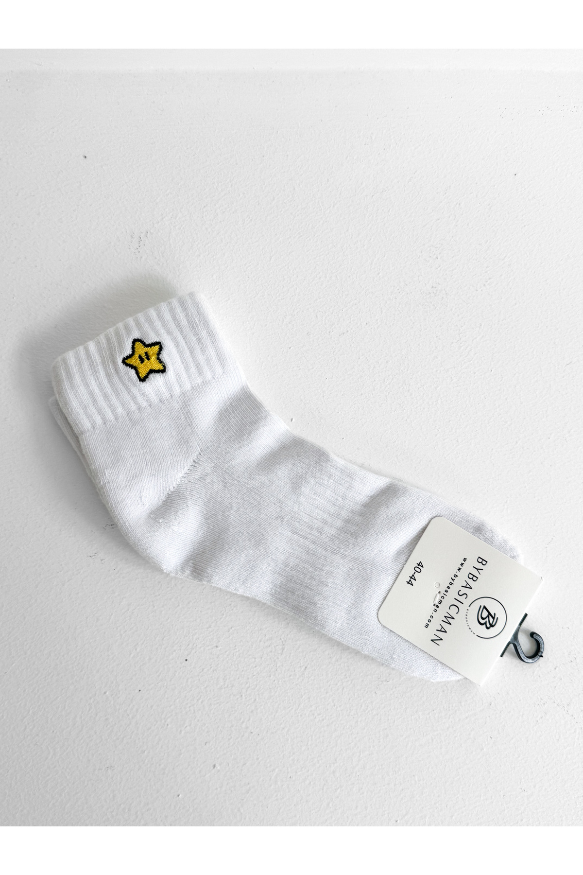BYBASICMAN وايت ستار مطرز جوارب نصفية