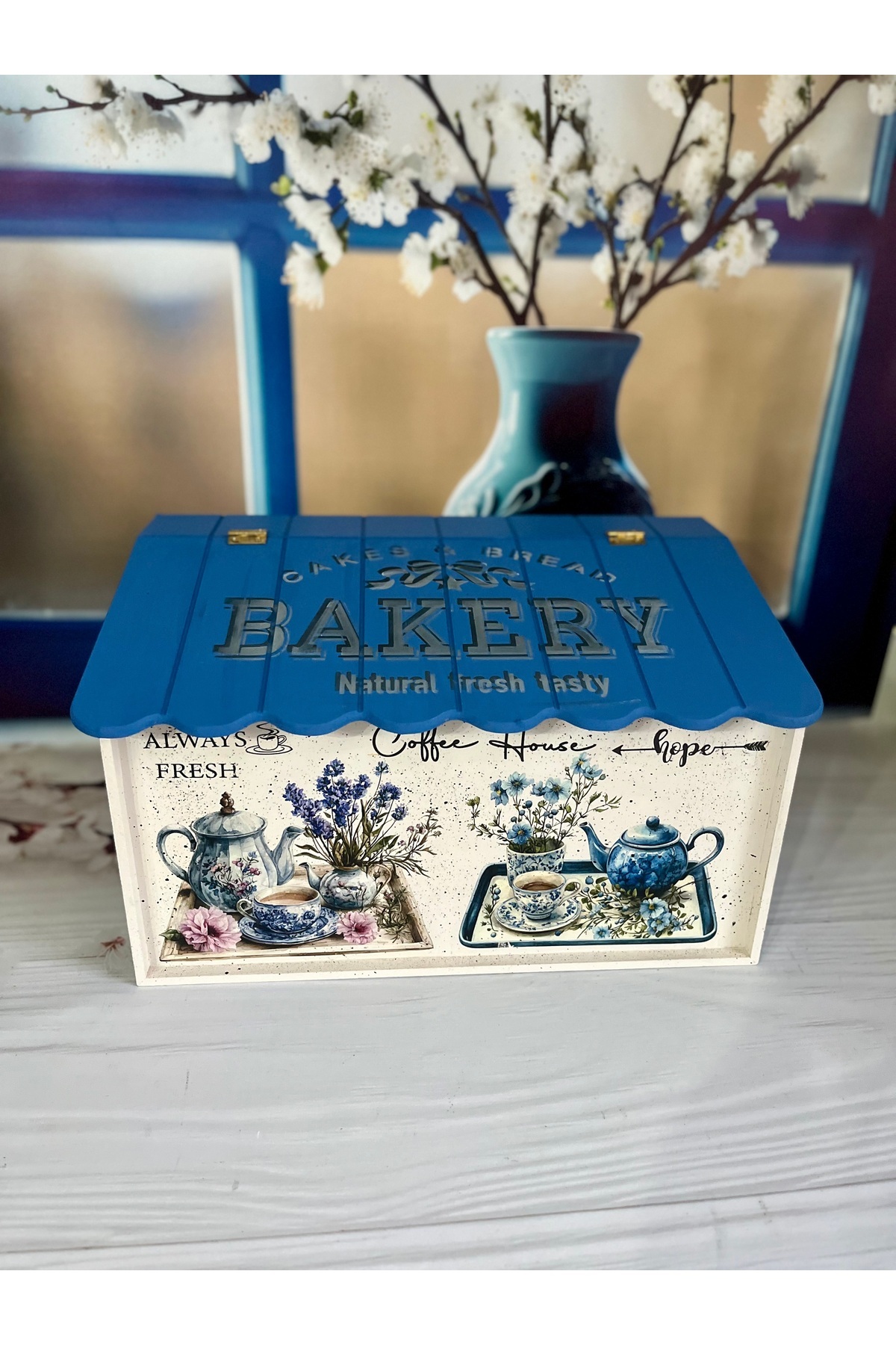 ميزات صندوق خبز خشبي منقوش باللون الأزرق للمطبخ من Bypinaryuksel