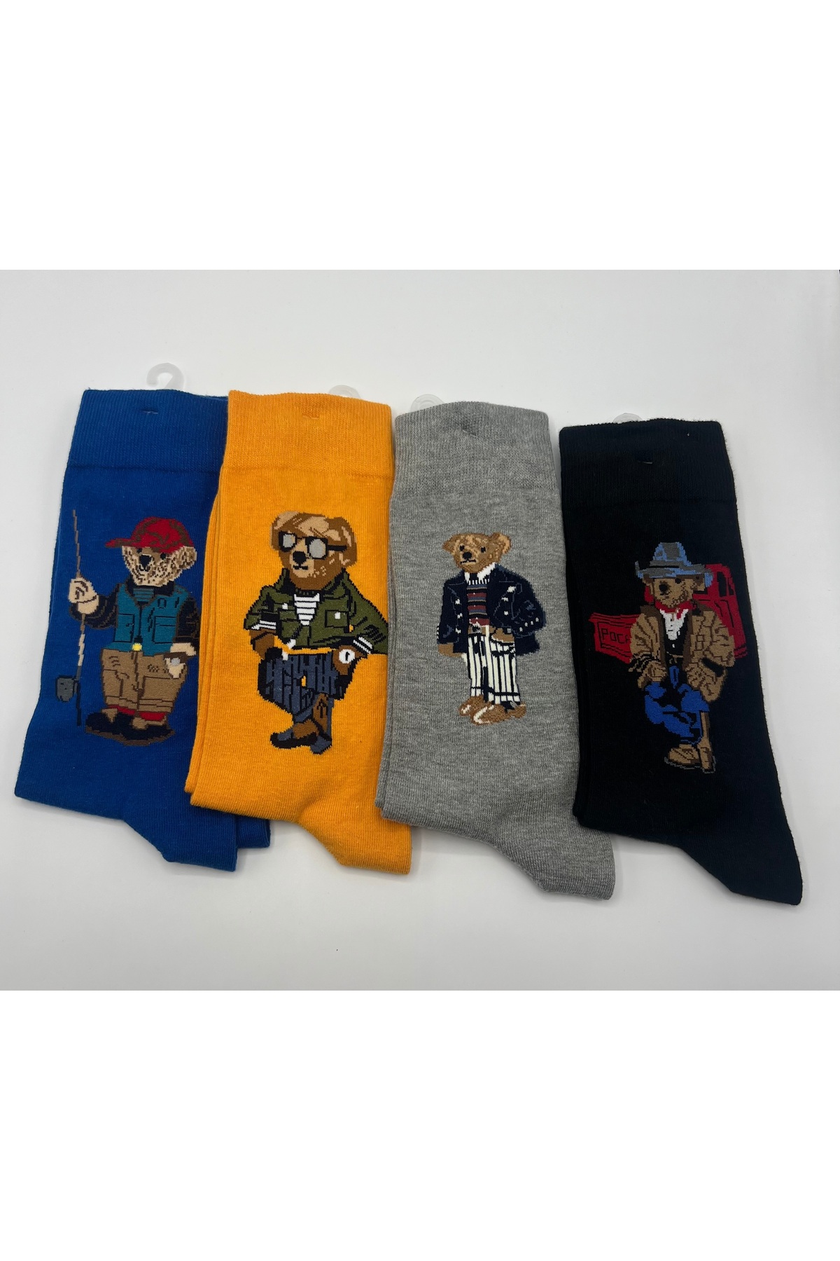 BZN 4 قطع من جوارب الدببة ذات النمط الدبليو-تاي