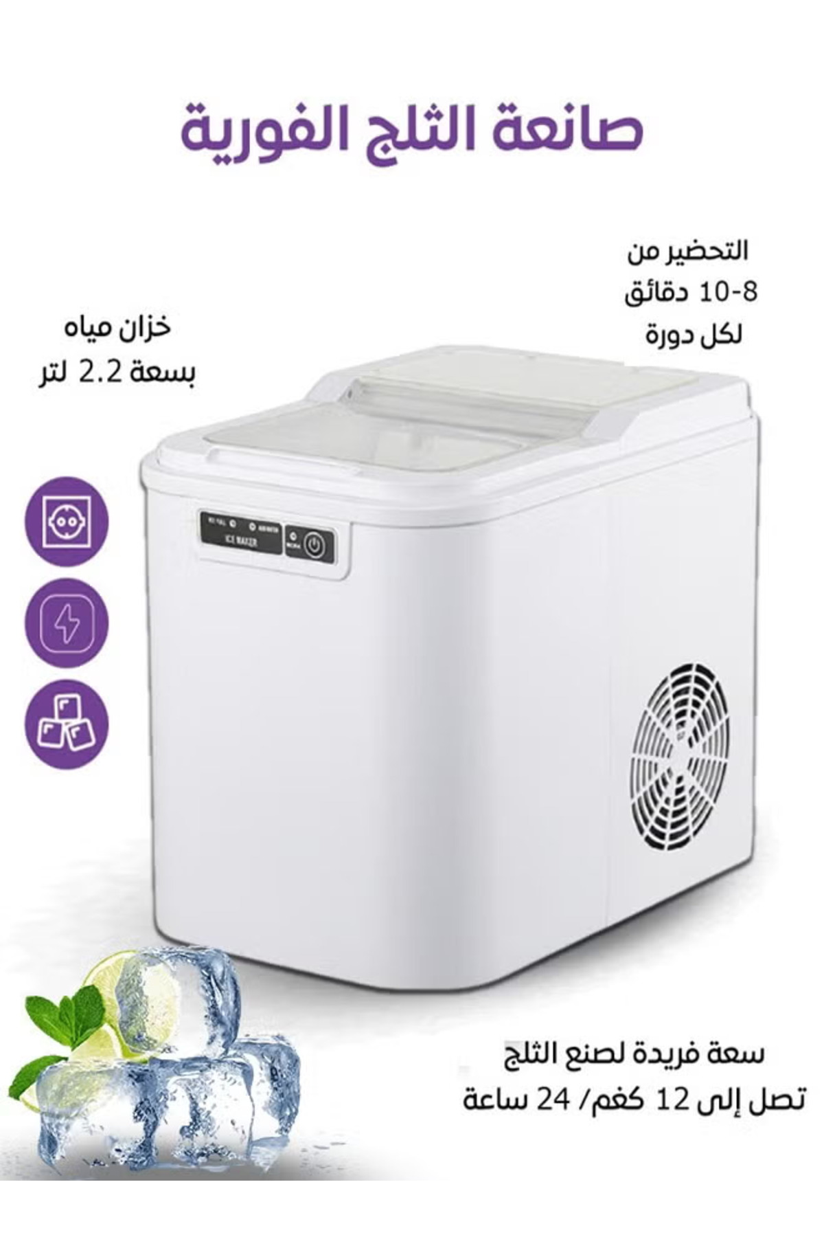 ميزات ماكينة صنع مكعبات الثلج، صانعة الثلج سعة 2.2 لتر بقوة 120 واط من Cady One