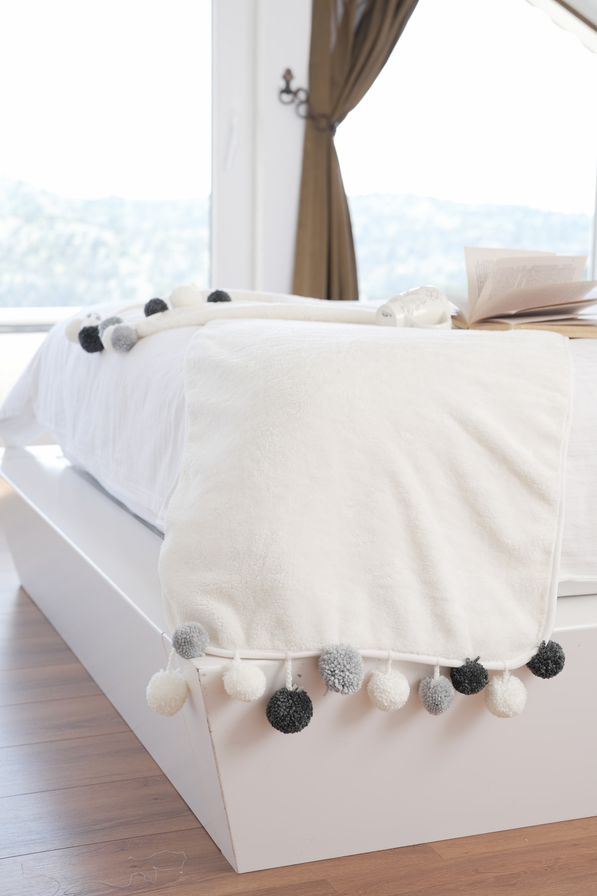 ميزات سجادة سرير ويلسوفت مع زخارف بومبوم | شال | غطاء سرير من CAKKATEX