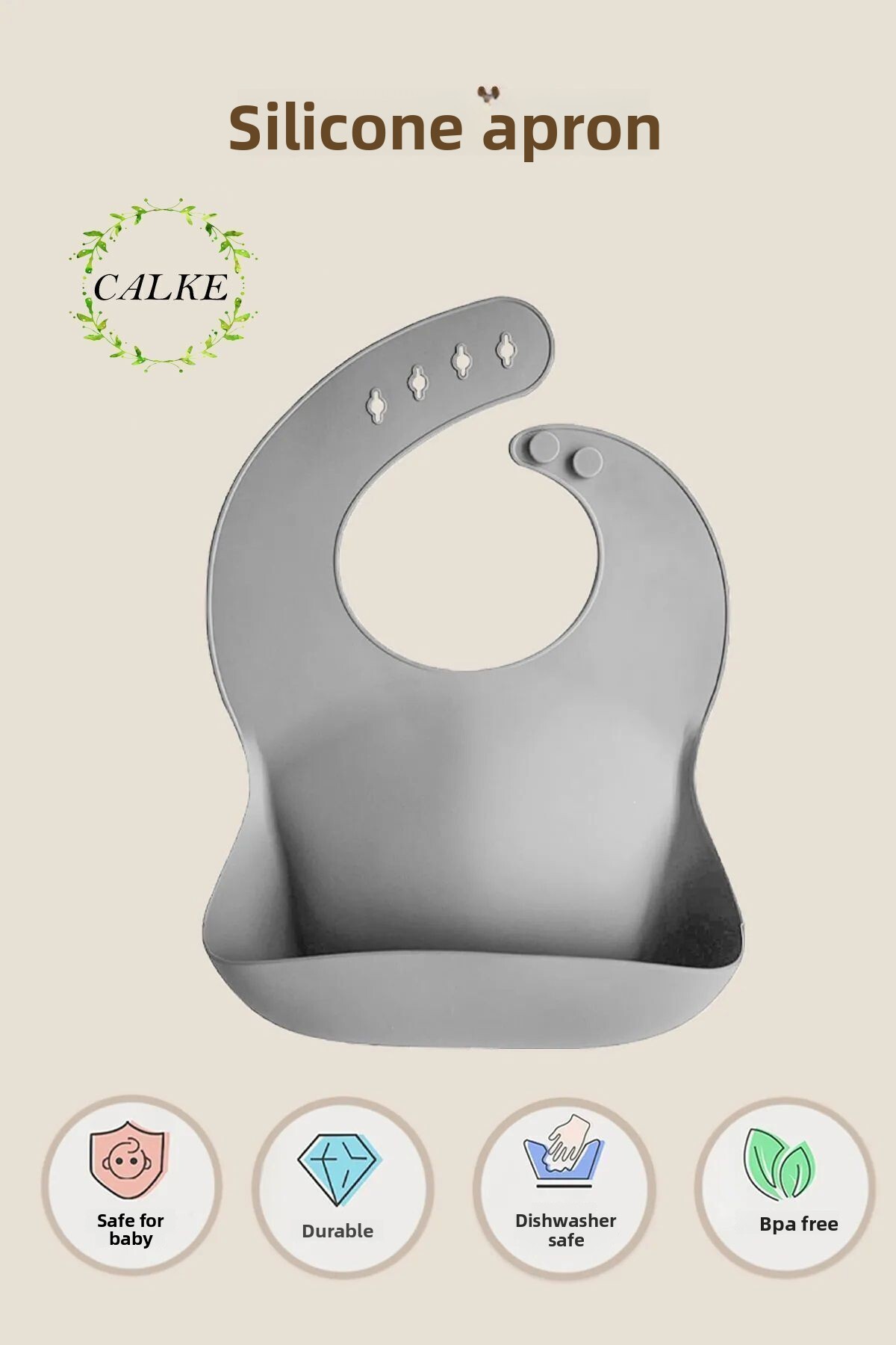 ميزات مريلة سيليكون رمادية من Calke