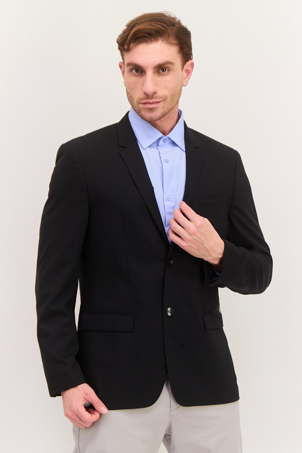 ميزات سترة رسمية سادة بقصّة عادية للرجال، باللون الأسود من Calvin Klein