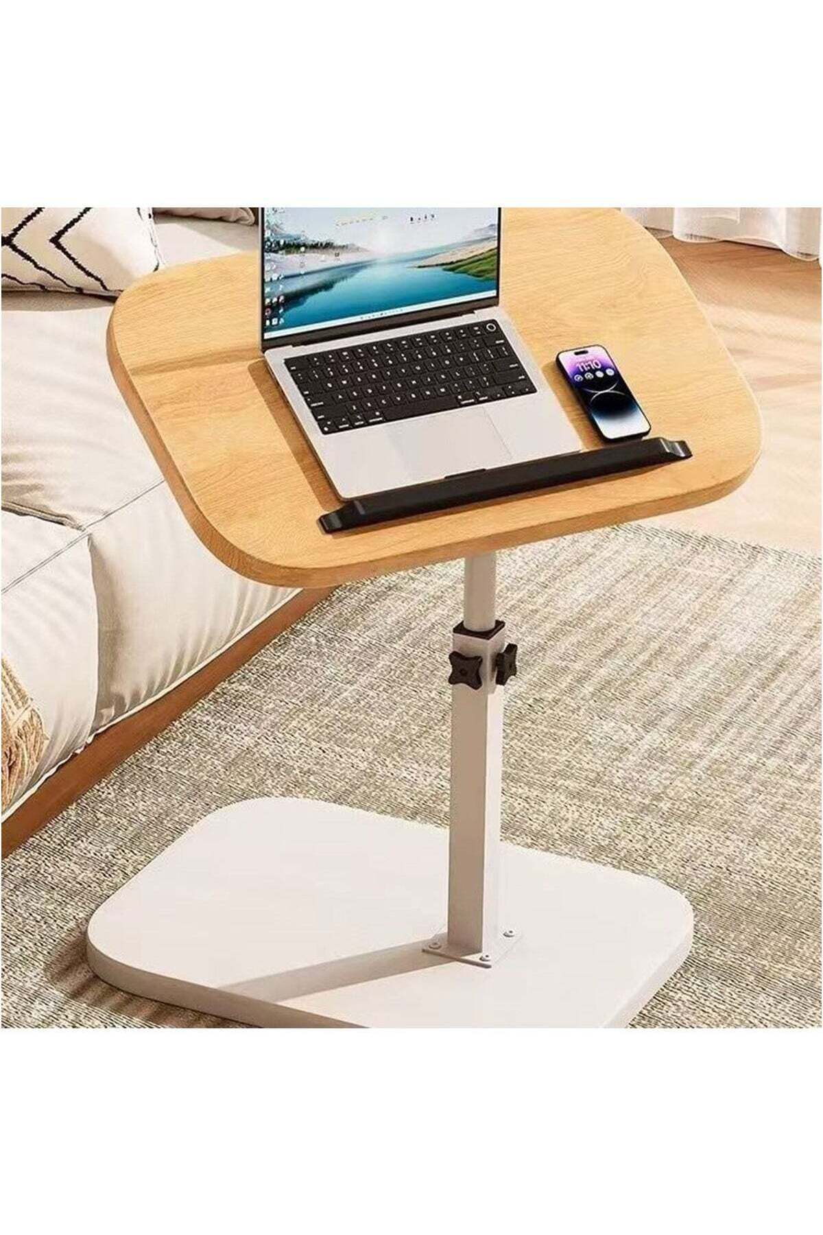 ميزات طاولة صينية أريكة قابلة للتعديل على شكل حرف C من Hihonor - دوارة 360 درجة، مصنوعة من الخشب من CamelMall