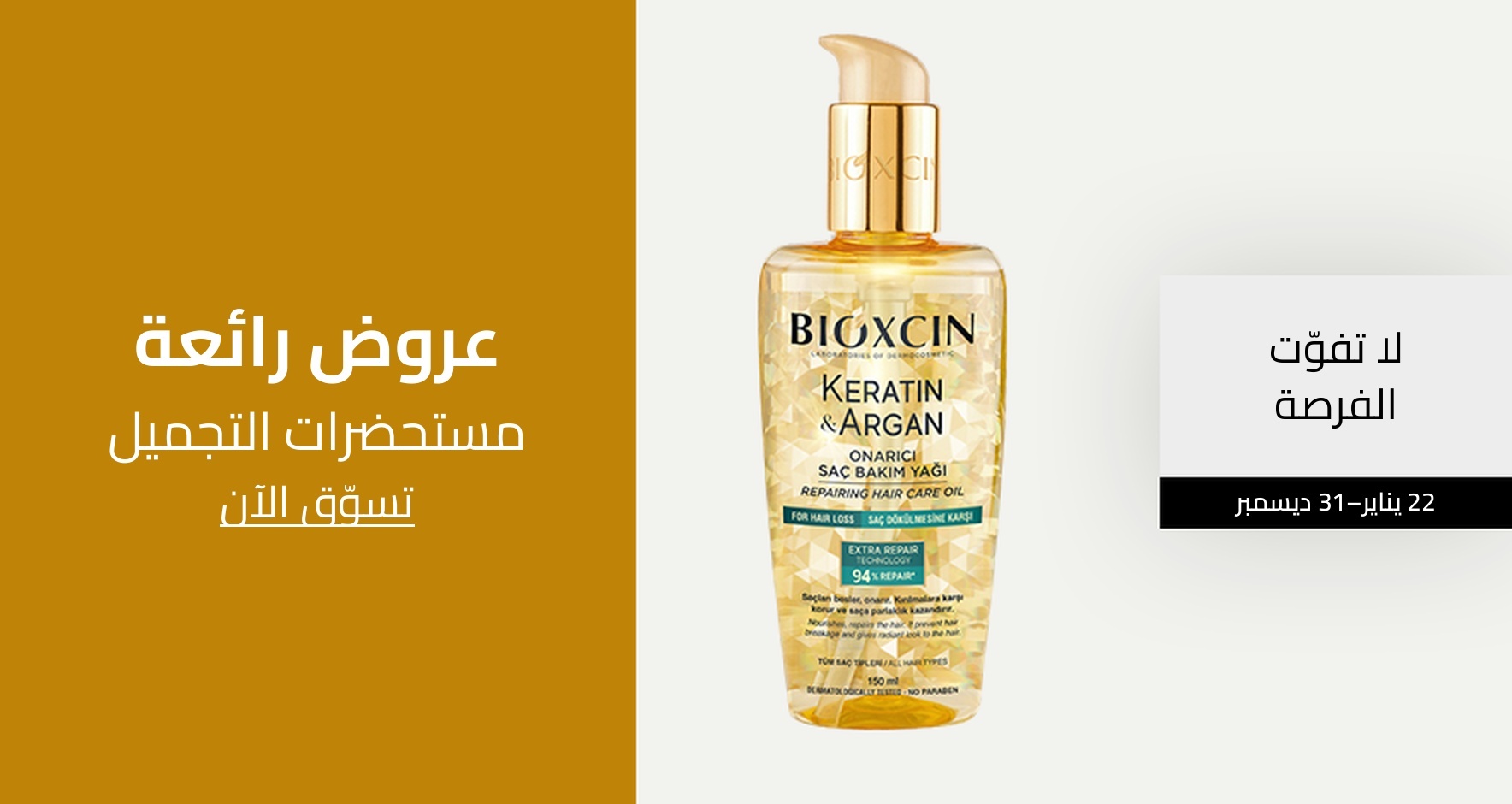 استكشفي تشكيلة غنية ومتنوعة من مستحضرات التجميل التي تضم أفضل الماركات العالمية، مثل كريمات الأساس، أحمر الشفاه، ظلال العيون، والمسكرة. تقدم هذه المنتجات لكِ إمكانية تحقيق إطلالة مكياج متكاملة وجذابة، سواء كنتِ تفضلين الإطلالة الطبيعية اليومية أو تلك الجريئة للمناسبات الخاصة. كما يمكنكِ اختيار أدوات تطبيق المكياج الاحترافية، مثل الفُرش الإسفنجية، التي تضمن لكِ الحصول على مظهر مثالي وأنيق.