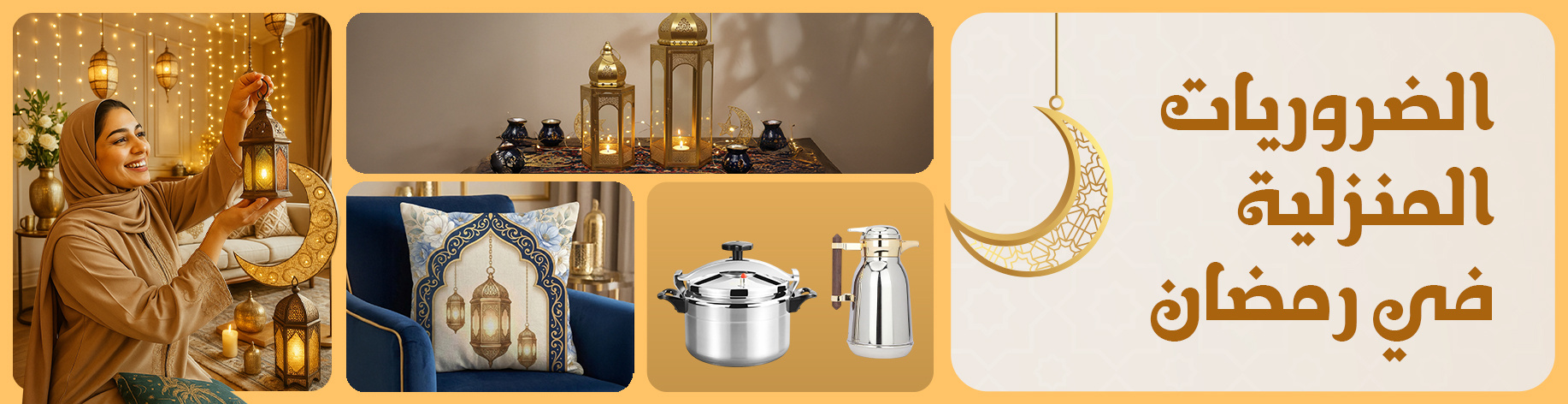Choice زينة مدفع تحية إسلامية مع هلال أبيض وفانوس ذهبي لتزيين سطح مكتب رمضان.