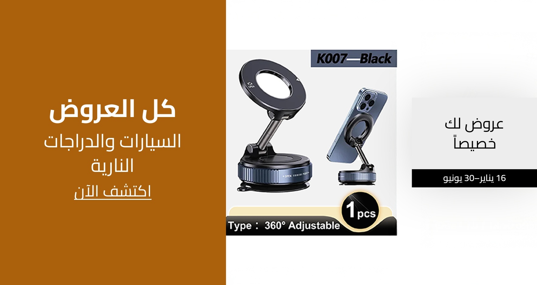 Choice حامل هاتف سيارة مغناطيسي قوي K007/K009 أسود قابل للطي بزاوية 360 درجة مع حامل مفرغ من الهواء