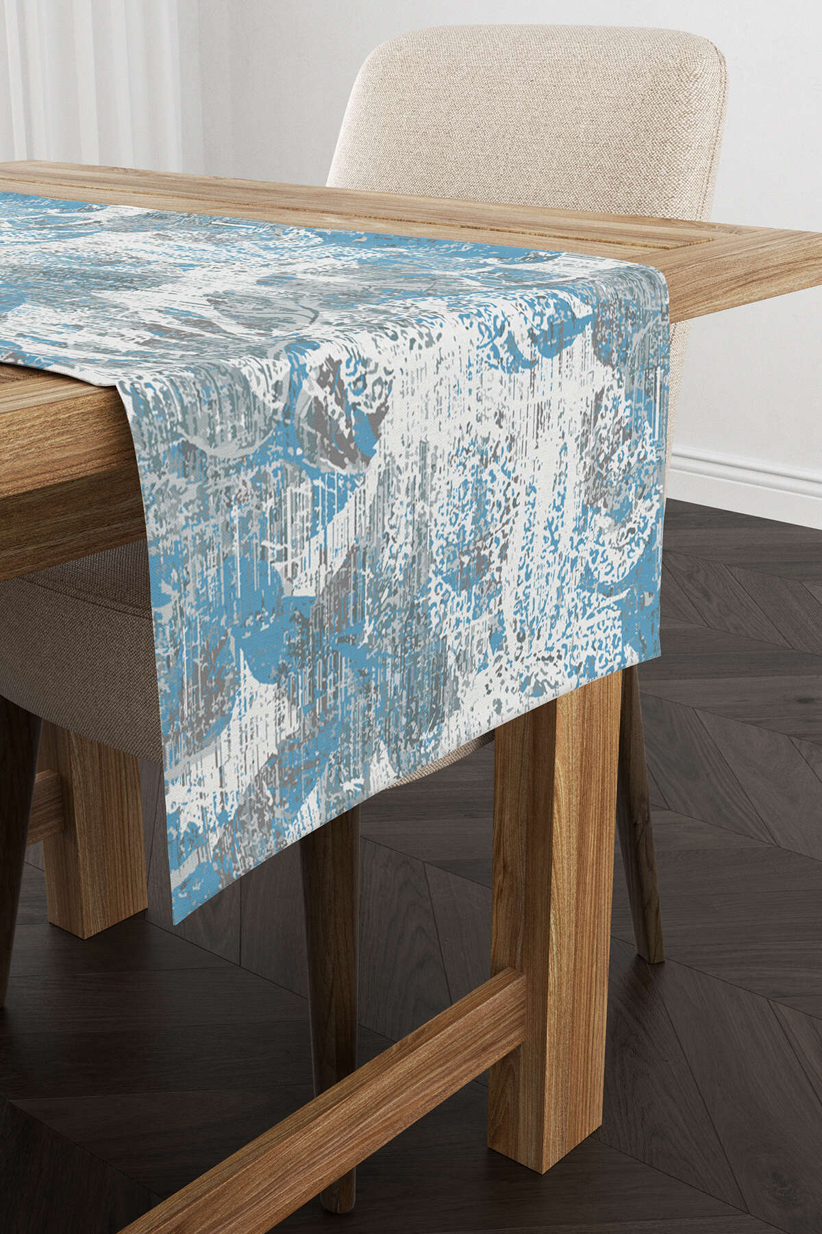 Cango Home عداء منقوش بأوراق الشجر باللونين الأزرق والأبيض - Cgh100-rn