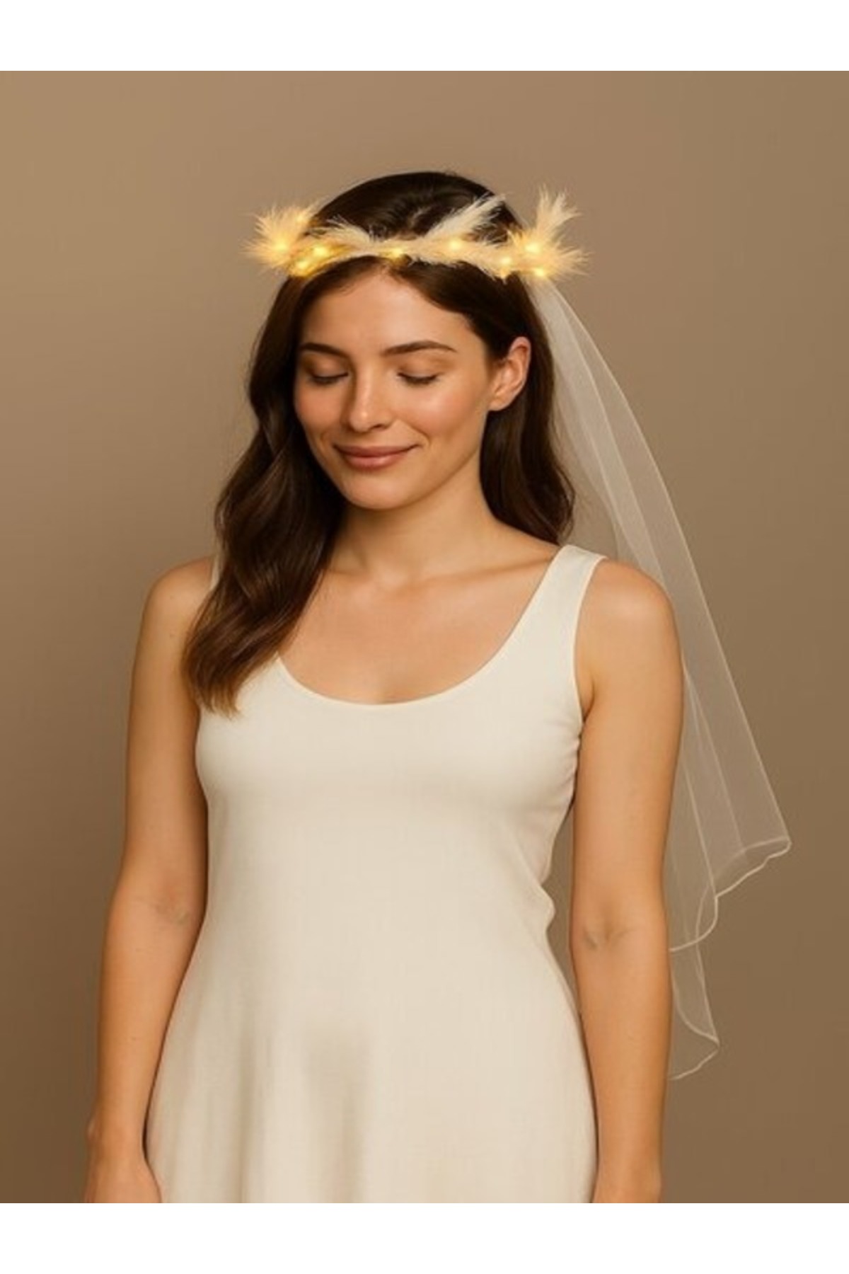 ميزات تاج الزفاف المزين بالريش المضيء من CANSIN