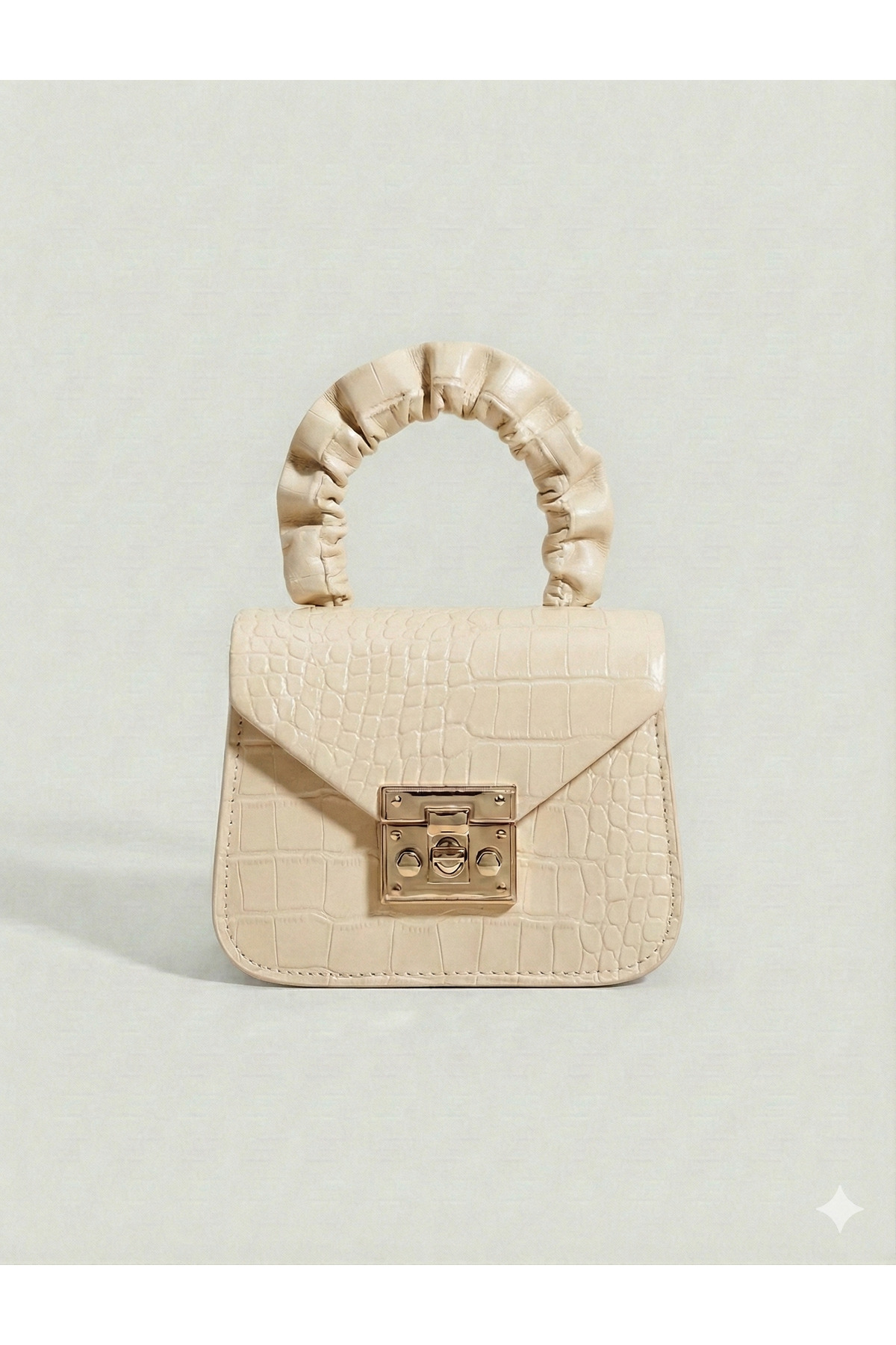ميزات - حقيبة جلدية صغيرة بنمط جلد التمساح مع مقبض قابل للشد من Çanta Trend