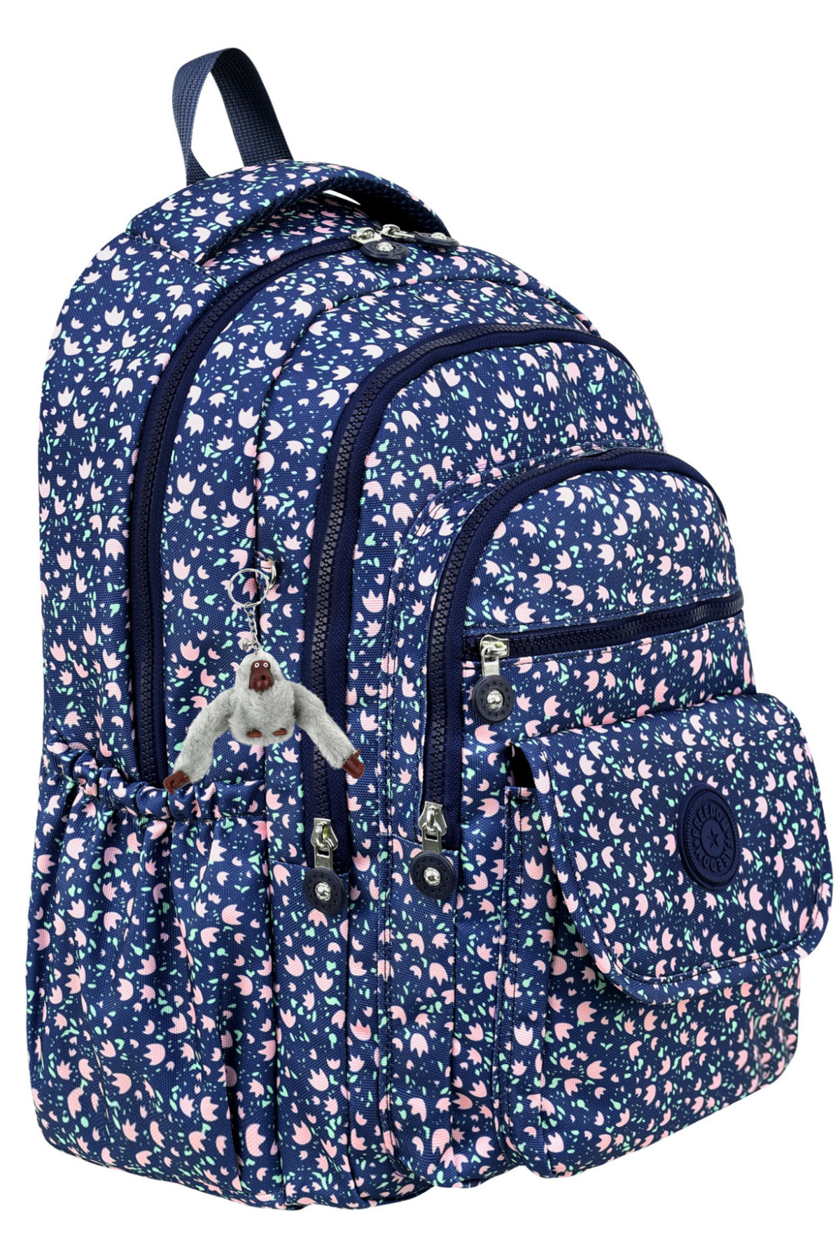 ميزات حقيبة ظهر فاخرة منقوشة متوسطة الحجم مع هدية سلسلة مفاتيح على شكل قرد من çantamgelsin