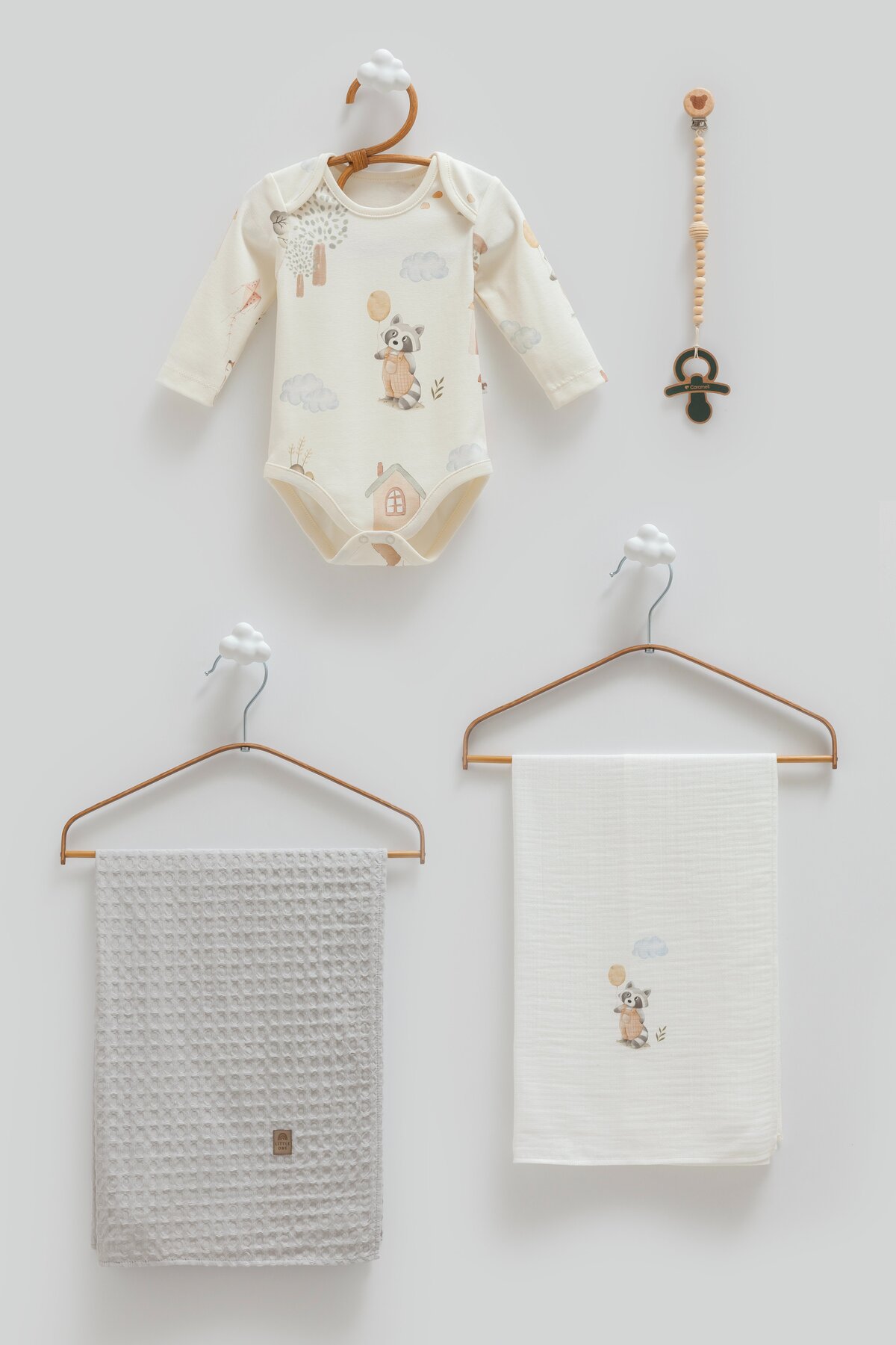Caramell طقم بطانية زيبين + دبل - رمادي STD