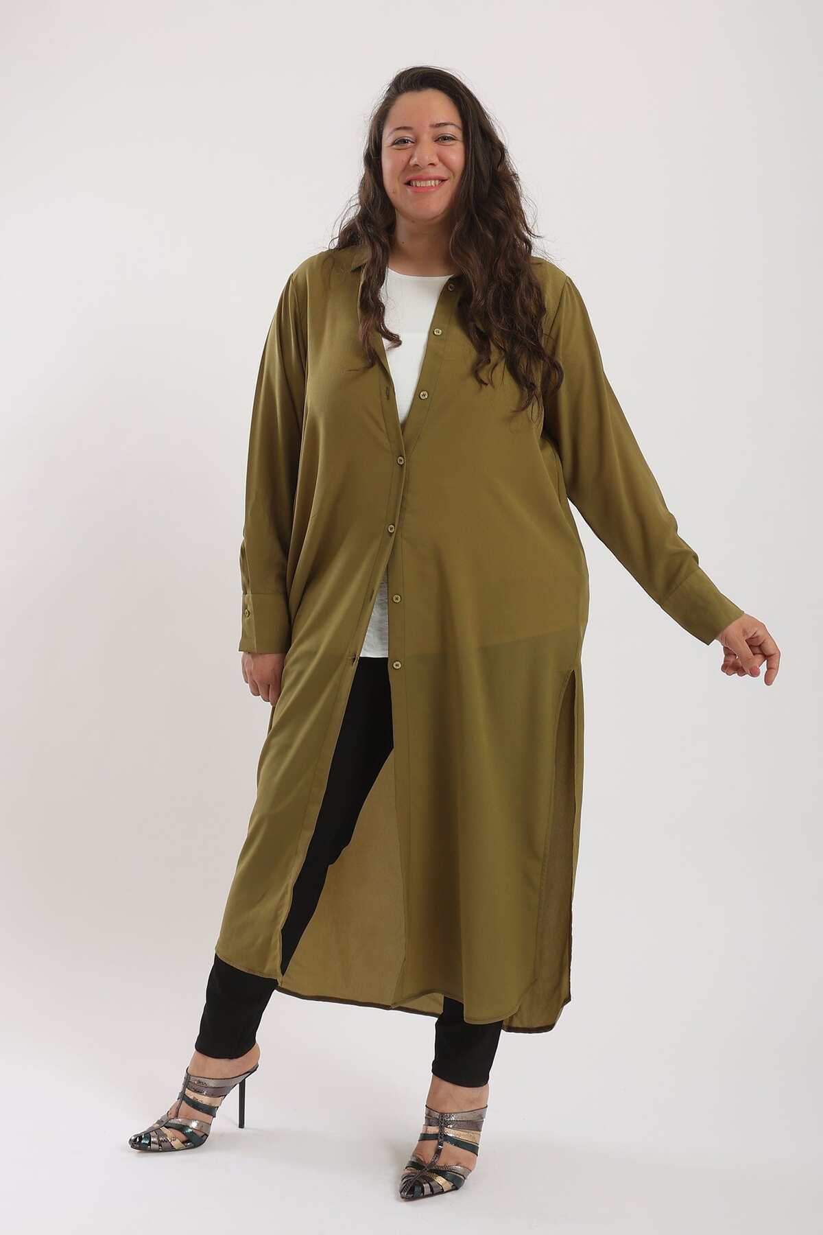 ميزات قميص سادة ملائم بأكمام طويلة من CARINA