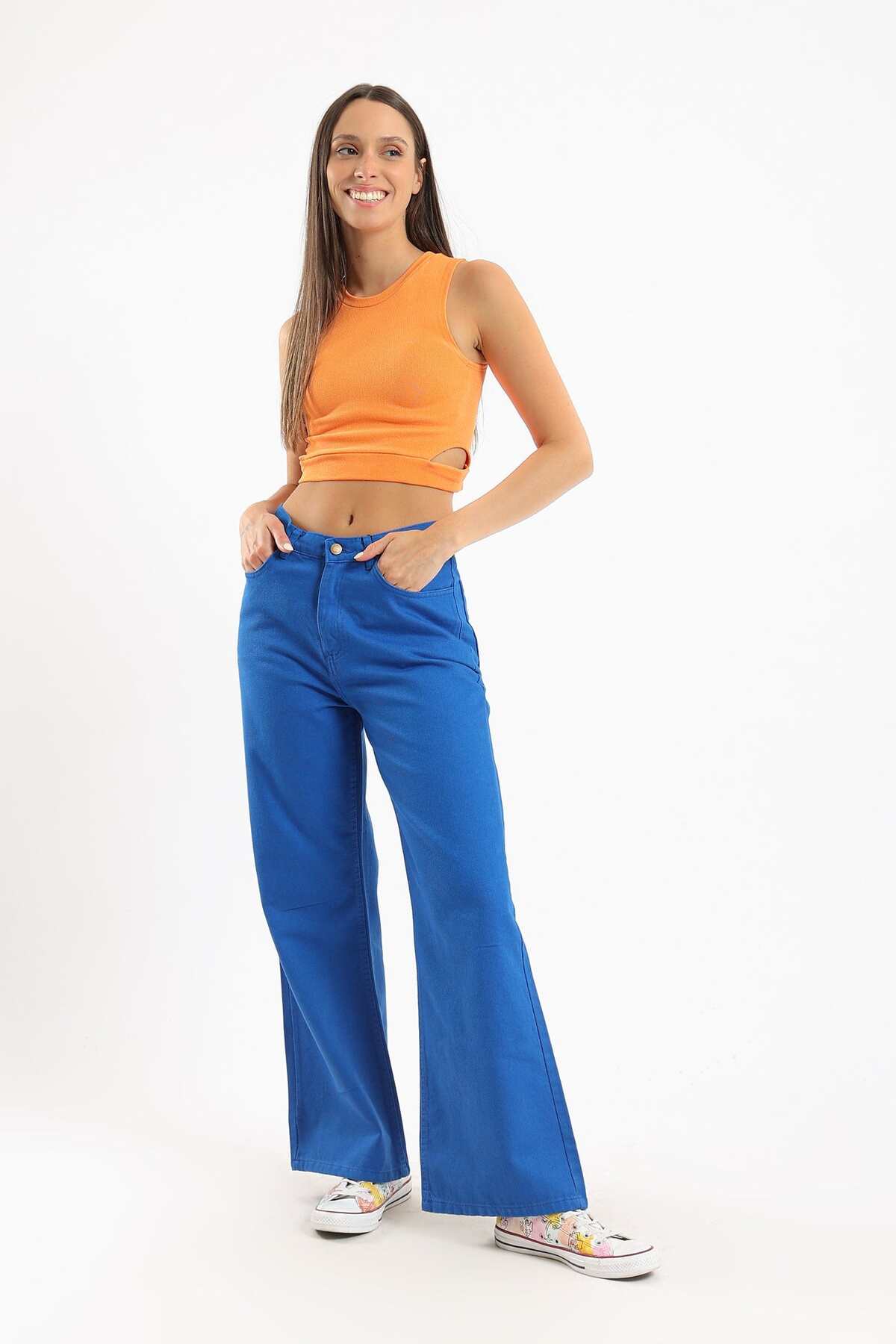 CARINA بلوزة كامي مفتوحة من الجانب مع حمالات