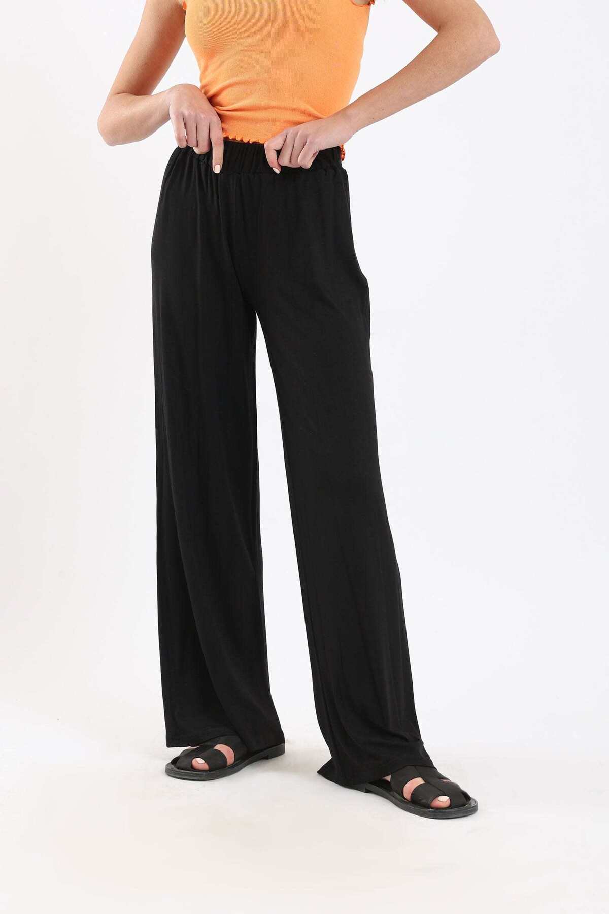 ميزات بنطلون واسع الساق ناعم وواسع من CARINA