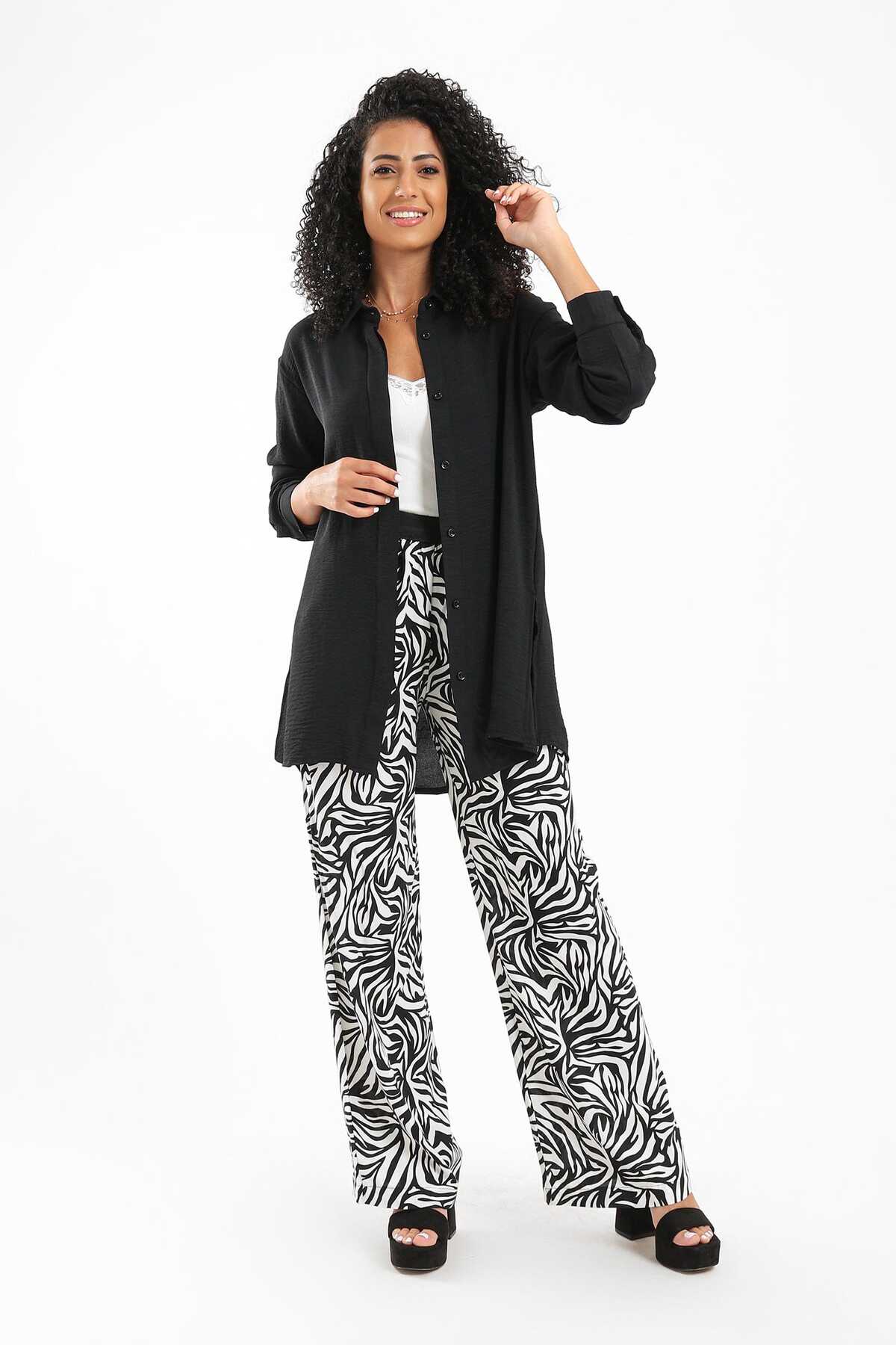 ميزات قميص سادة بأزرار أمامية من CARINA