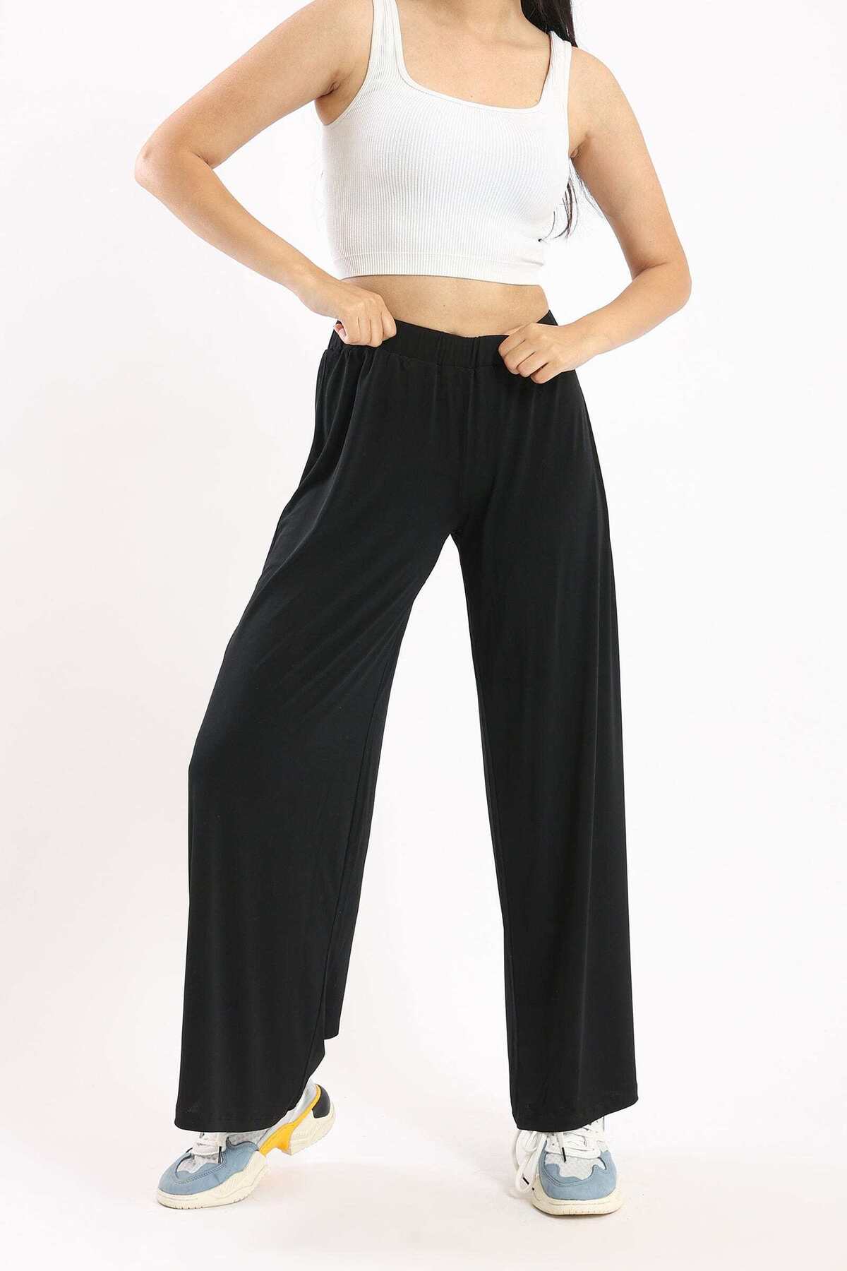 ميزات بنطلون واسع الساق كاجوال سادة من CARINA