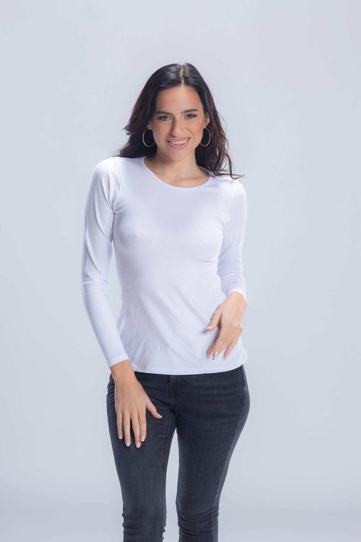 CARINA بلوزة قطنية سادة برقبة دائرية