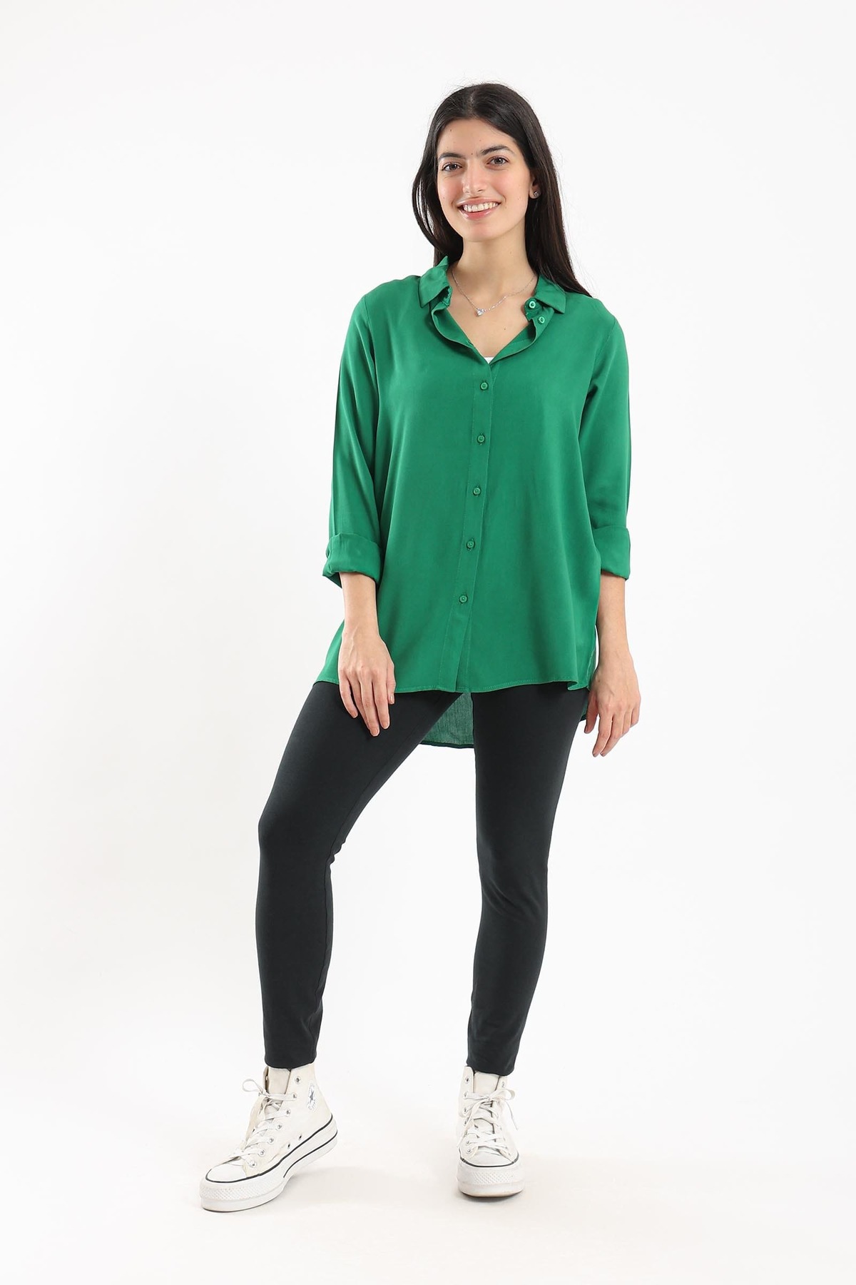 ميزات قميص سادة بأكمام طويلة من CARINA