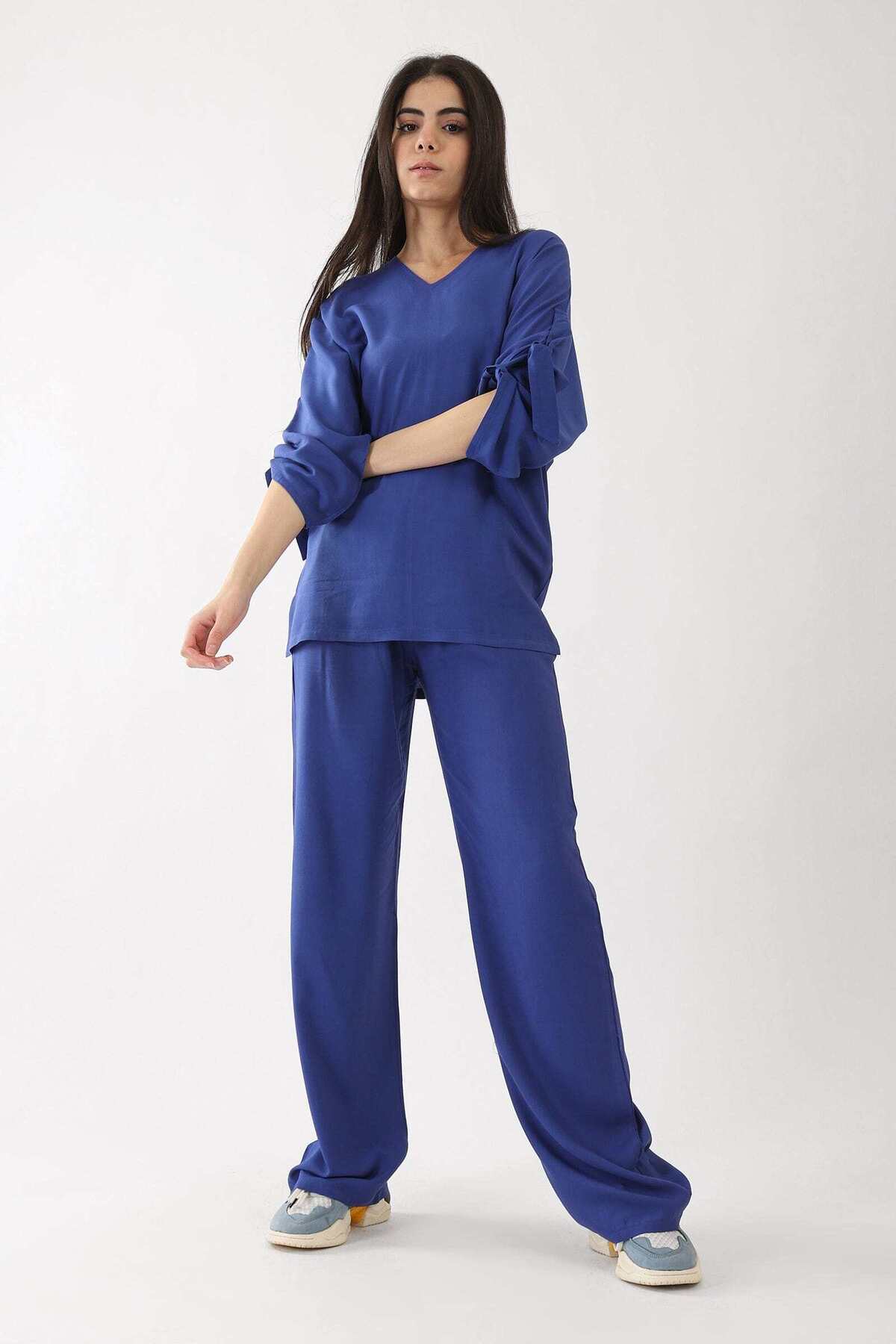ميزات بلوزة سادة بأكمام طويلة وربطة عنق من CARINA