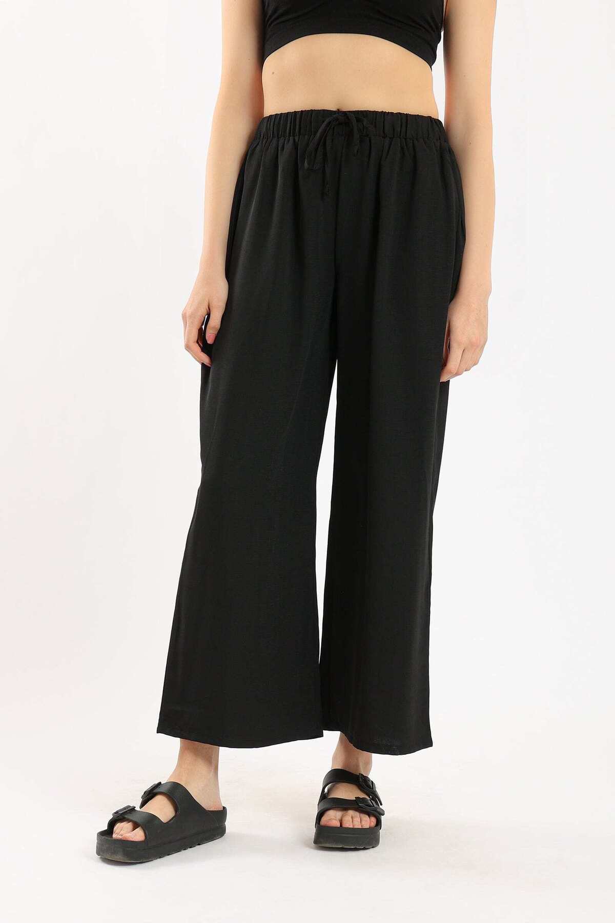 ميزات بنطلون واسع الساق سادة من CARINA