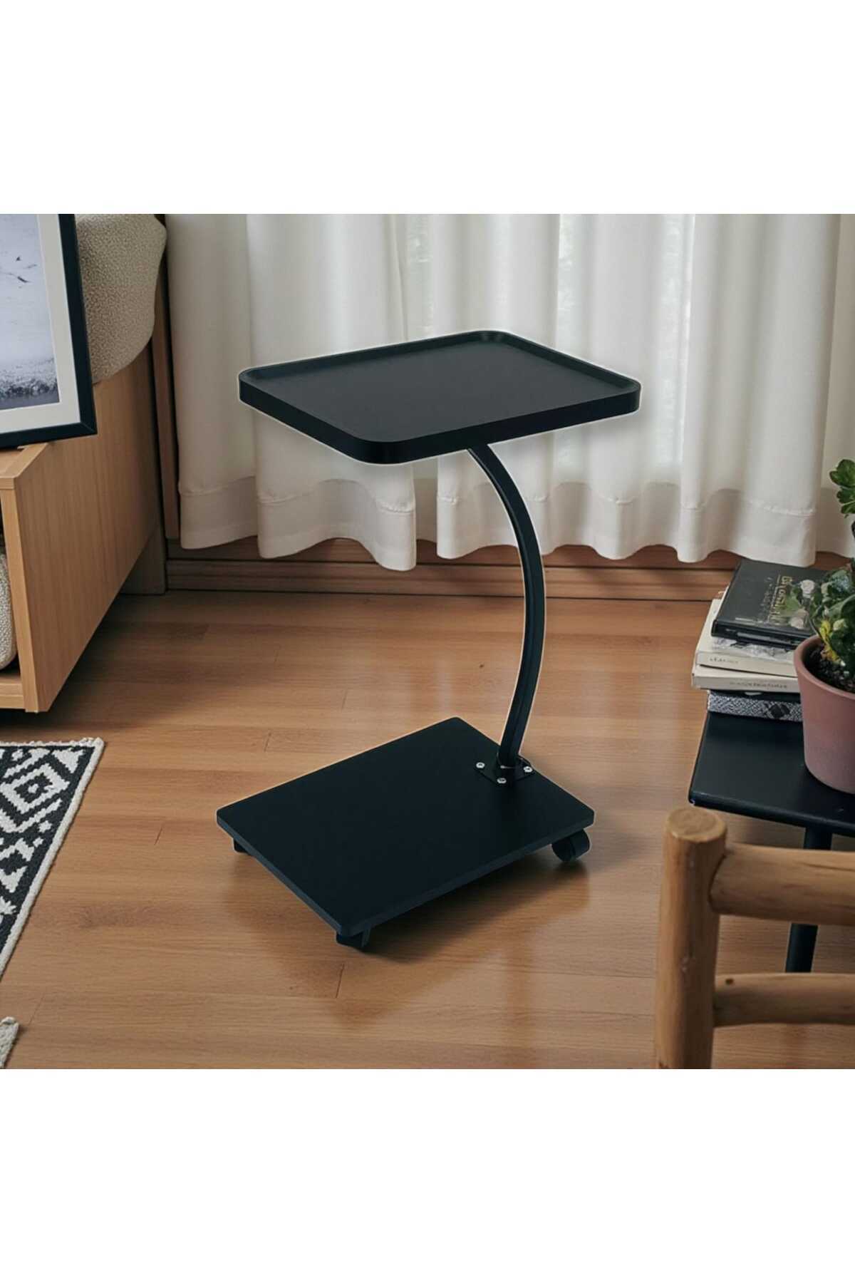 Casco طاولة جانبية عصرية متعددة الاستخدامات، قاعدة متينة مزودة بعجلات لسهولة الحركة، لون أسود