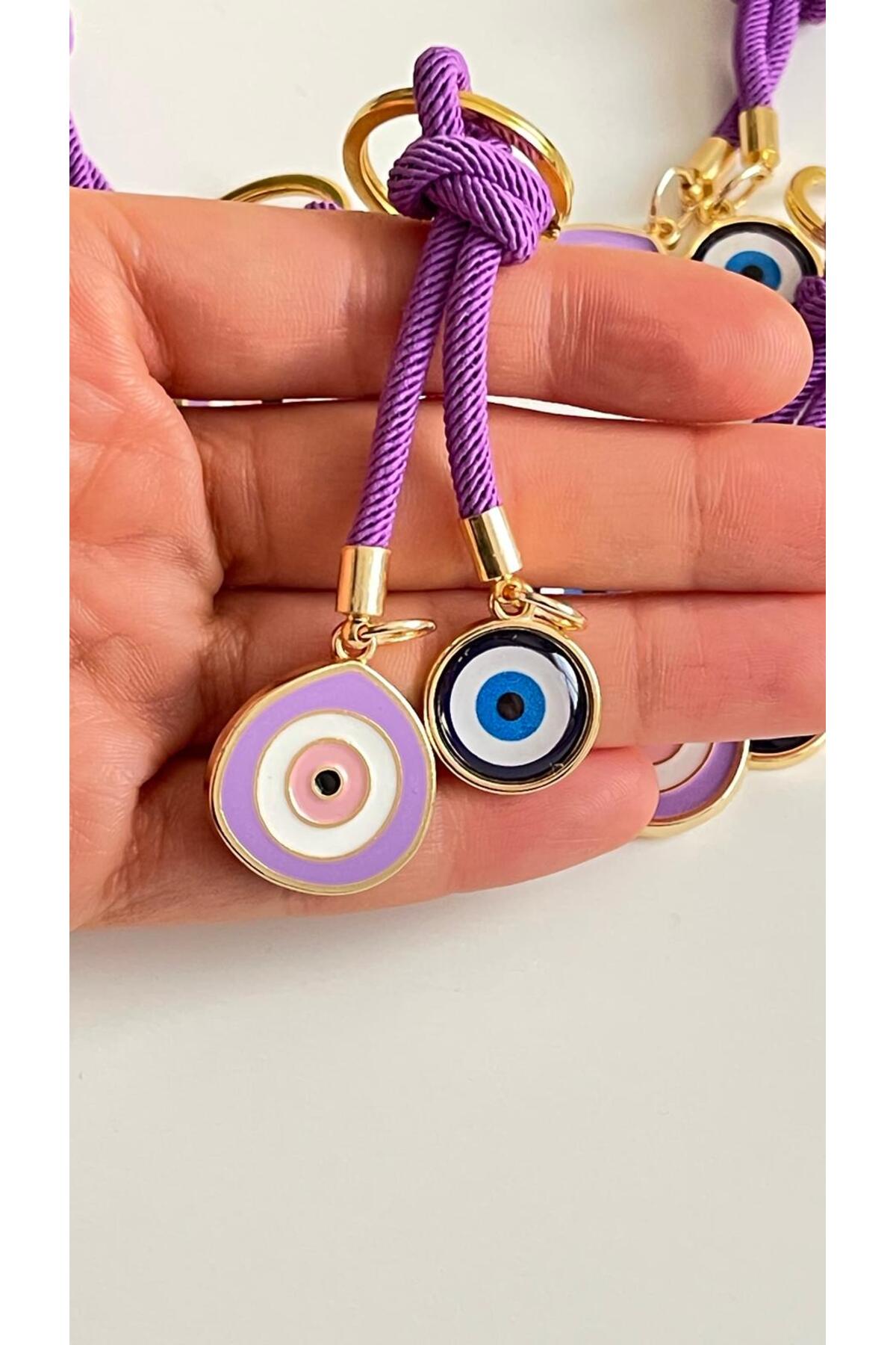 ميزات سلسلة مفاتيح على شكل عين الحسد مصنوعة من الخرز الأرجواني من Cassime