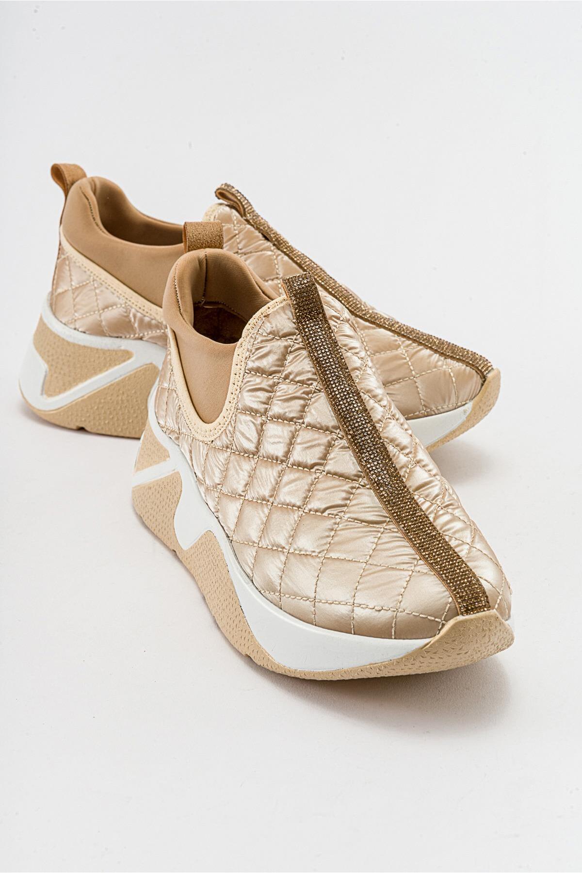 ميزات حذاء رياضي بنمط مربع مرصع باللون البيج من Ccway