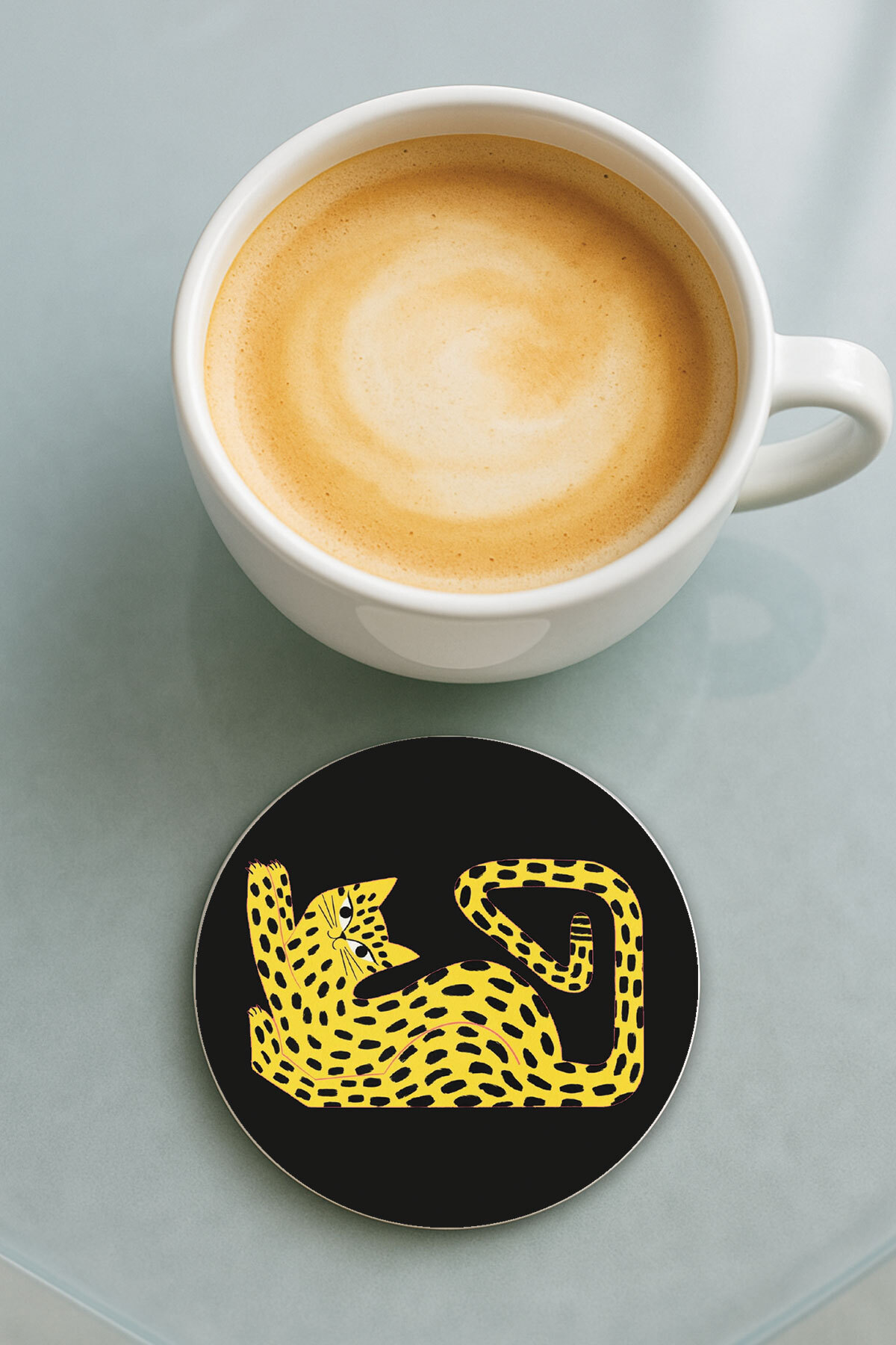 Cekuonline قاعدة كوب دائرية من البليكسي جلاس مع نقش مطبوع بتصميم قطة واحدة