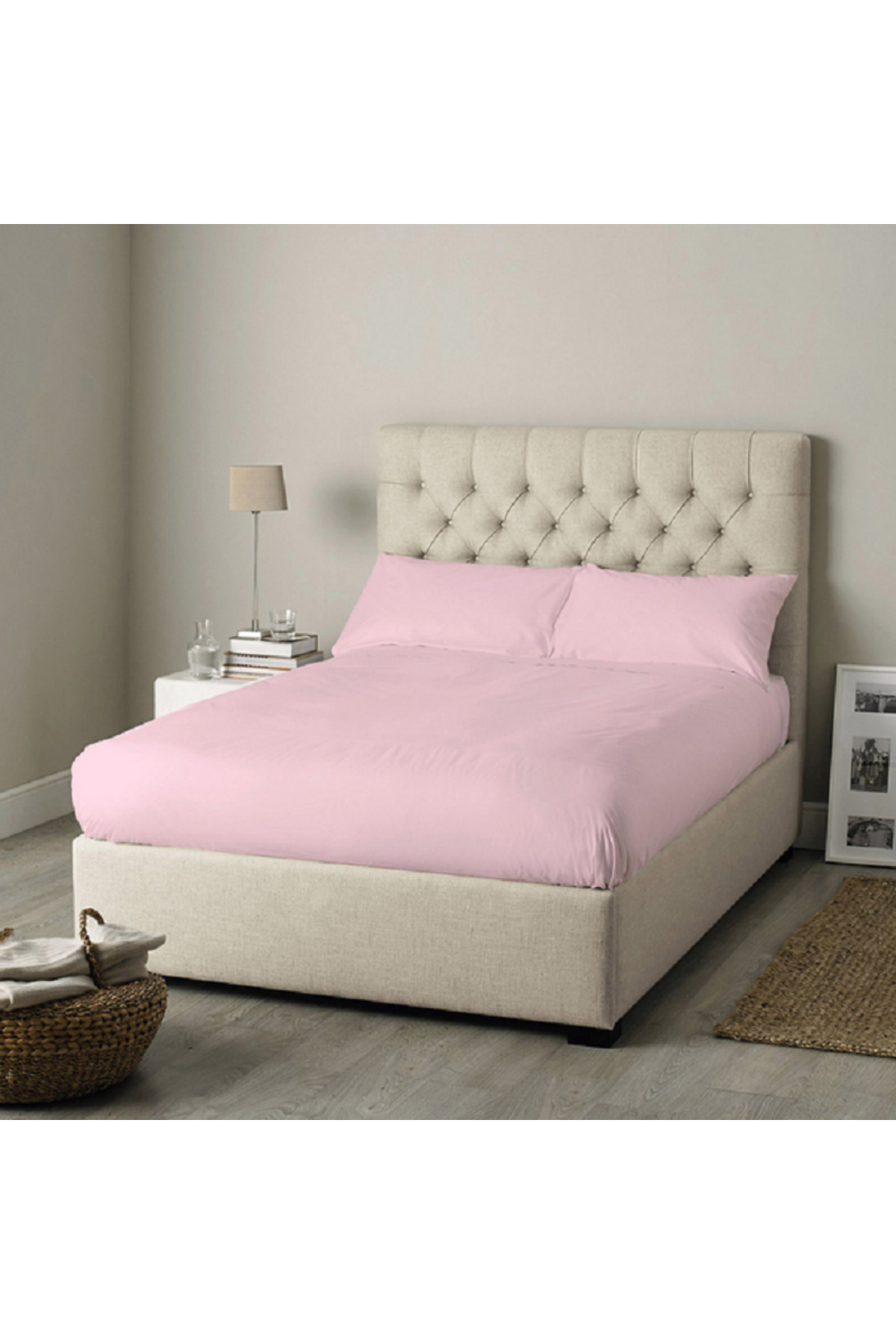 Celia ملاءة سرير مزدوجة مرنة ناعمة من القماش بتصميم مستطيل وردي، مقاس 120×200+30 سم