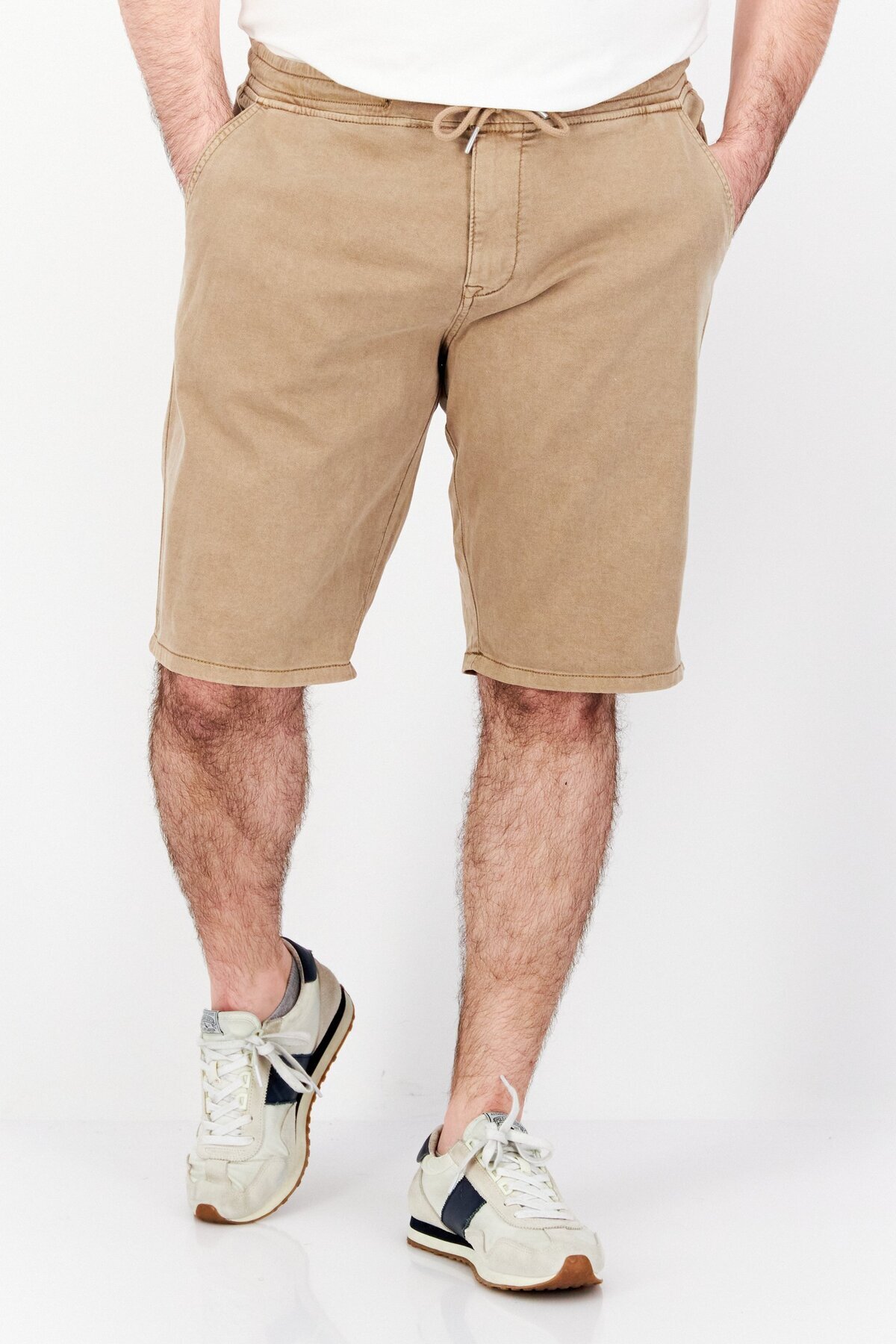 CELIO شورت رجالي أساسي برباط، لون بيج غامق