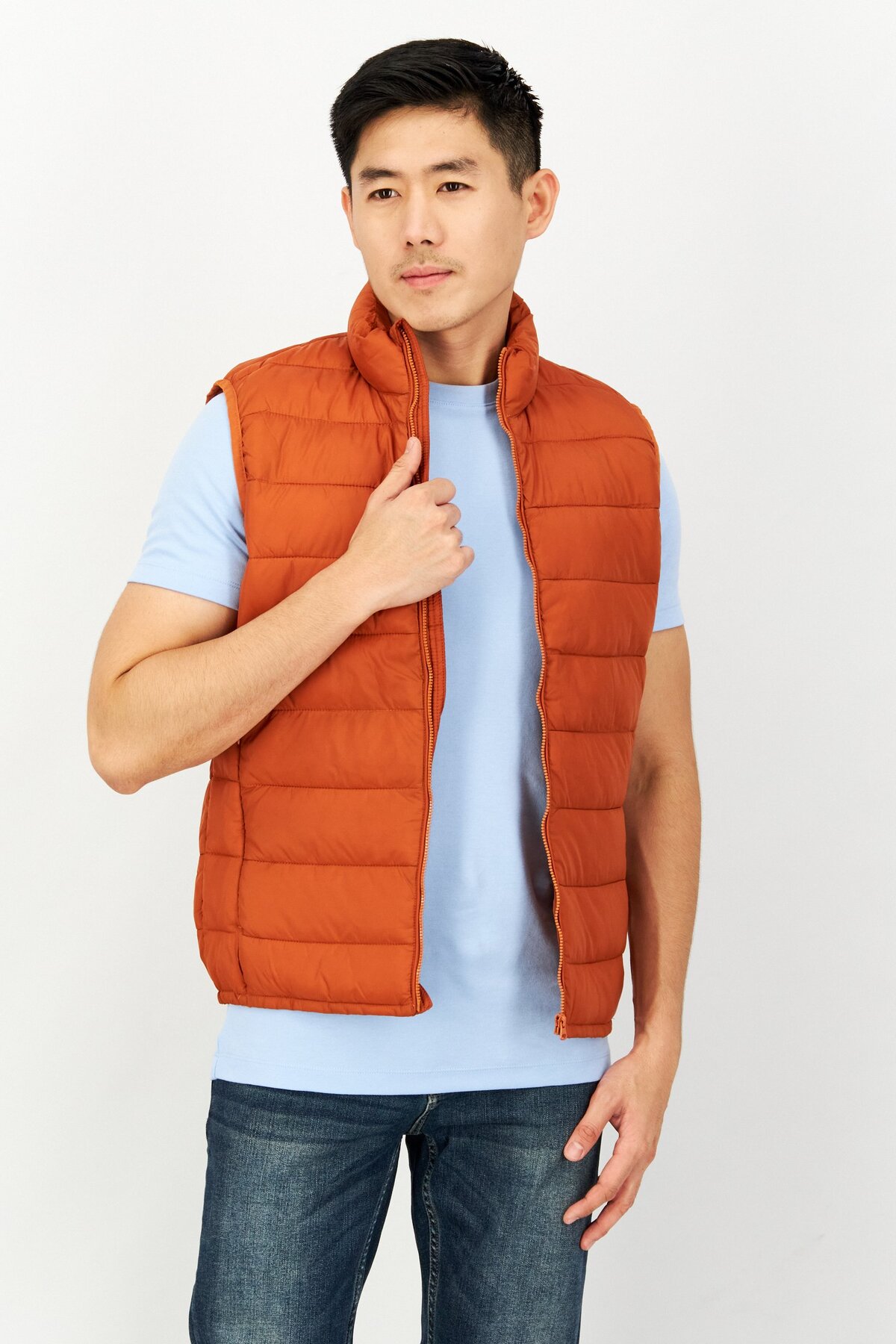 ميزات جاكيت رجالي منفوخ سادة، برتقالي من CELIO