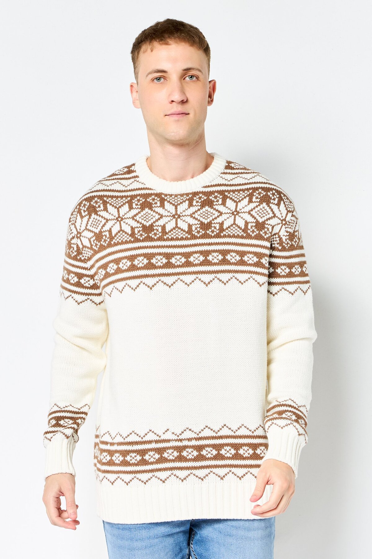 CELIO سترة رجالية مطبوع محبوكة، متعددة الألوان
