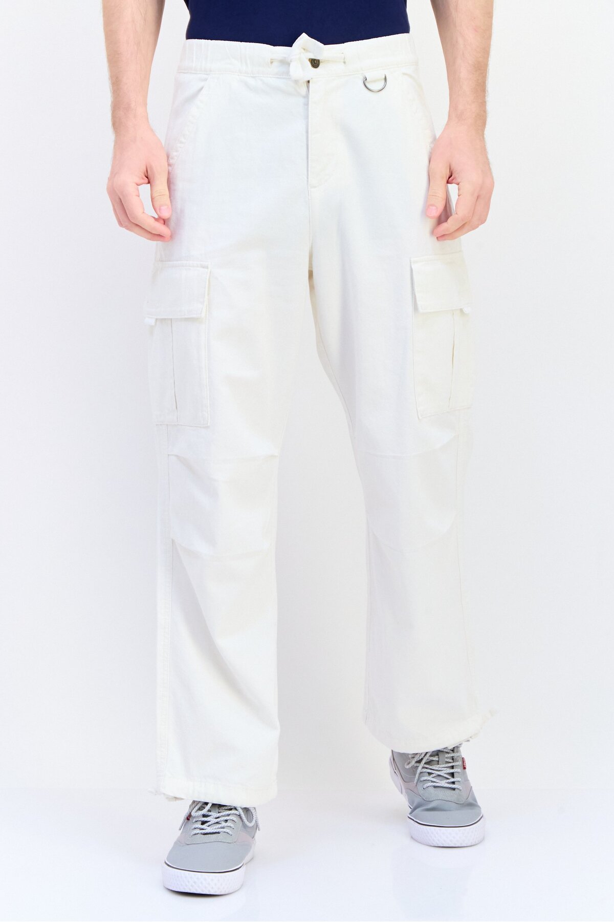 ميزات بنطلون كارغو سادة برباط وقصّة عادية للرجال، أبيض فاتح من CELIO