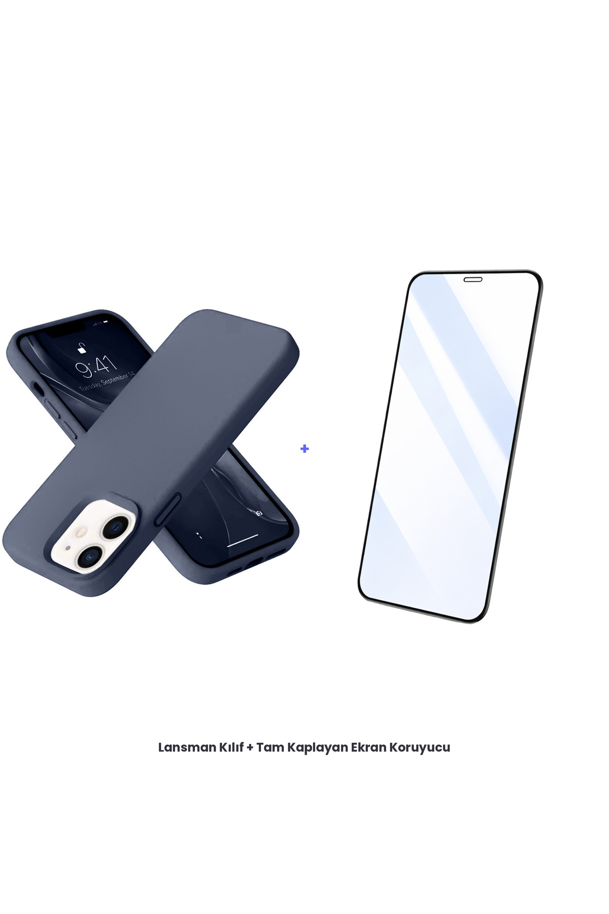 ميزات حافظة آيفون 12 + مجموعة واقي شاشة مضاد للكهرباء الساكنة - أزرق داكن من cepmoda
