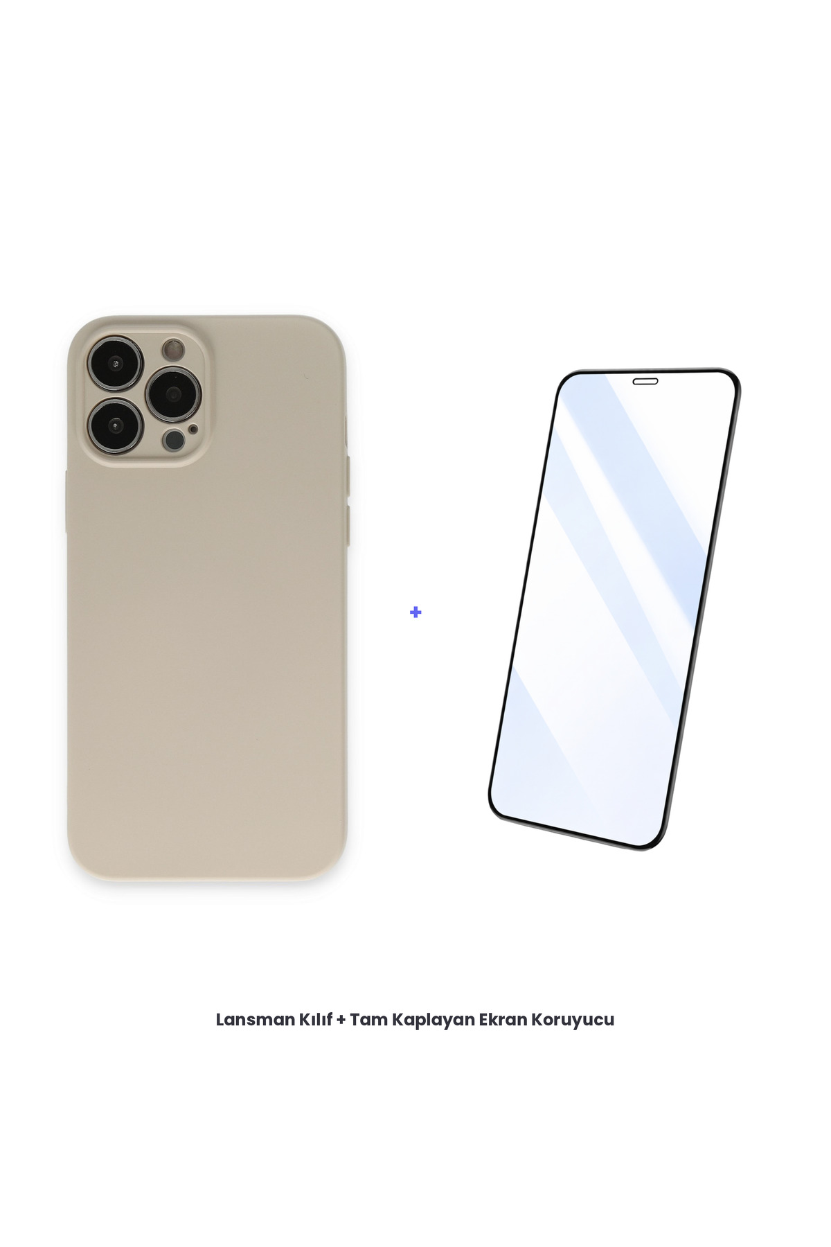 ميزات حافظة إطلاق نار لهاتف آيفون 13 برو + مجموعة واقي شاشة كامل التغطية مضاد للكهرباء الساكنة - بيج من cepmoda