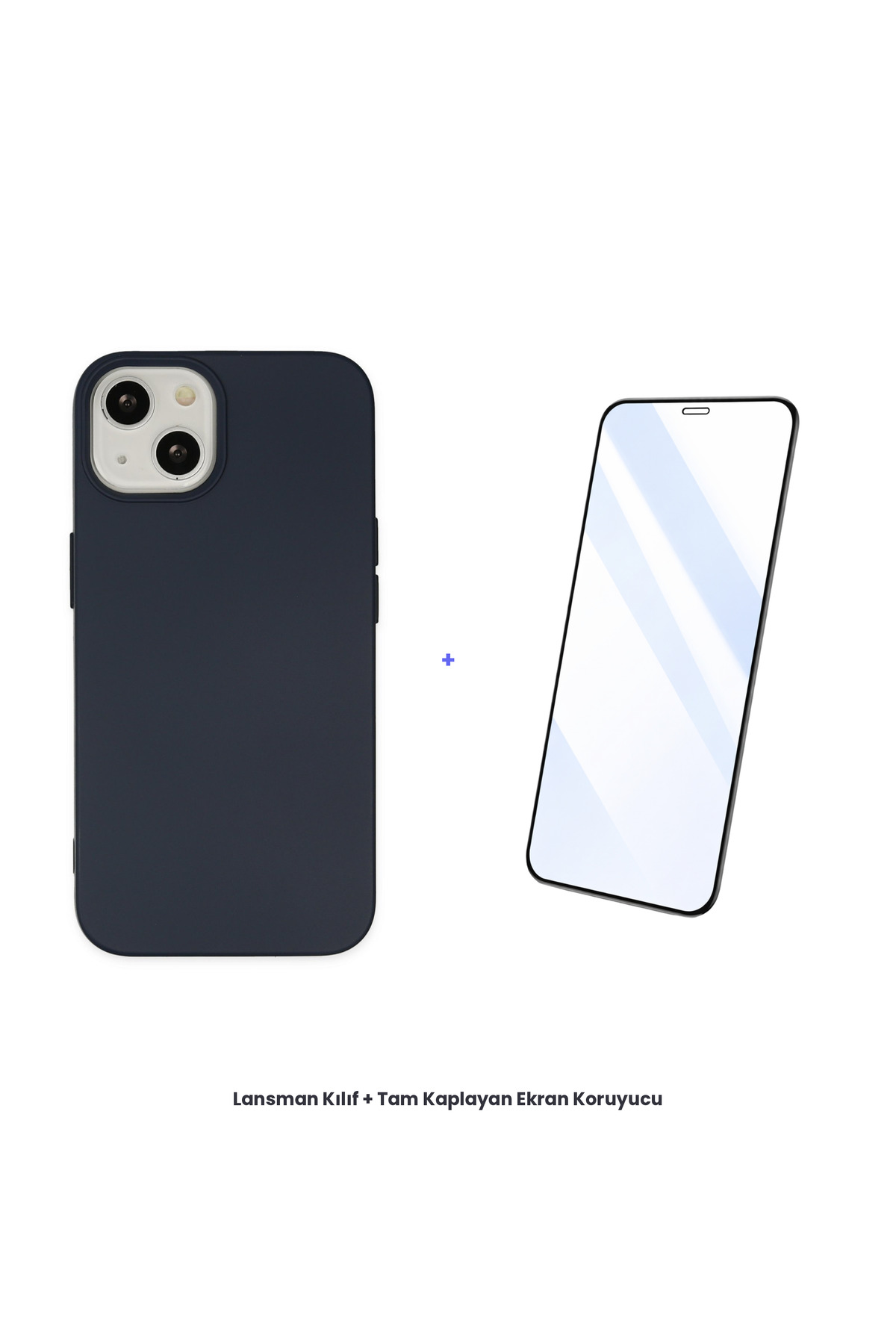 ميزات حافظة آيفون 14 + مجموعة واقي شاشة كامل التغطية مضاد للكهرباء الساكنة - أزرق داكن من cepmoda