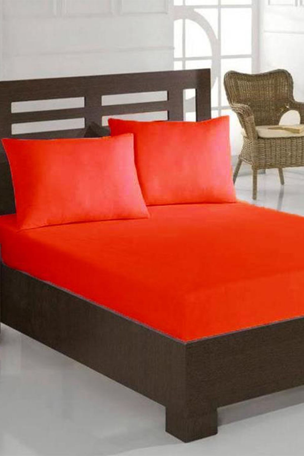 ميزات ملاءة مطاطية مزدوجة من القطن الممشط باللون الأحمر من Çeyiz Diyarı