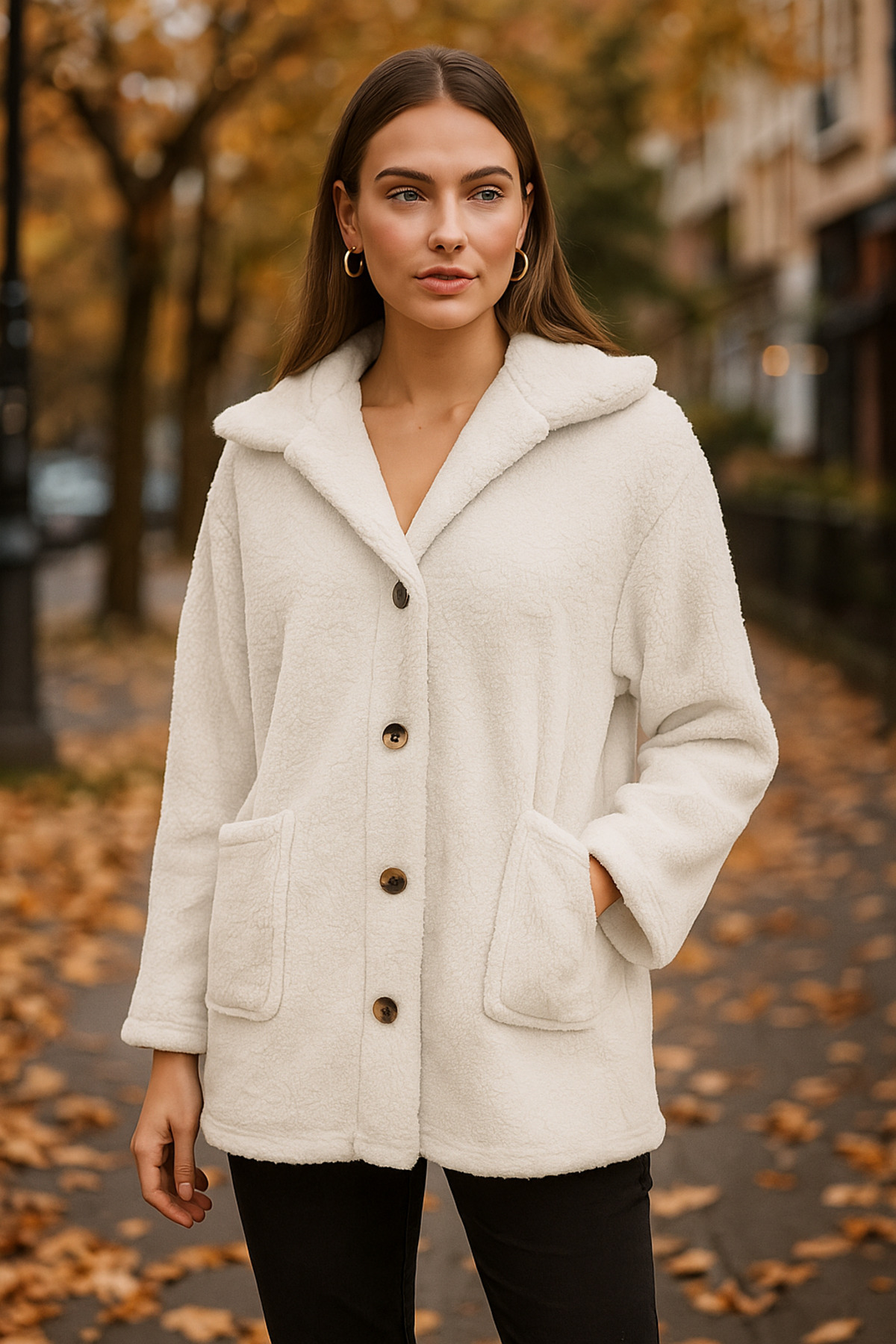 ميزات معطف قطيفة بجيب بأزرار من Ceylen