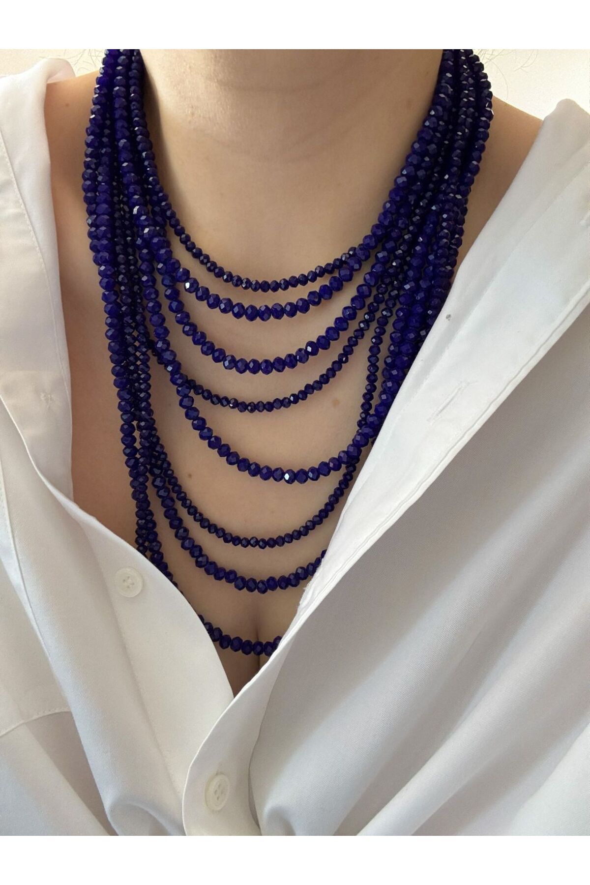 CHARMLUCKY قلادة متعددة من الخرز الكريستالي